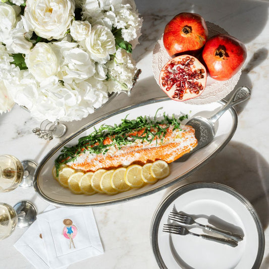 Floral Monogram White Linen Cocktail Napkin Set - New