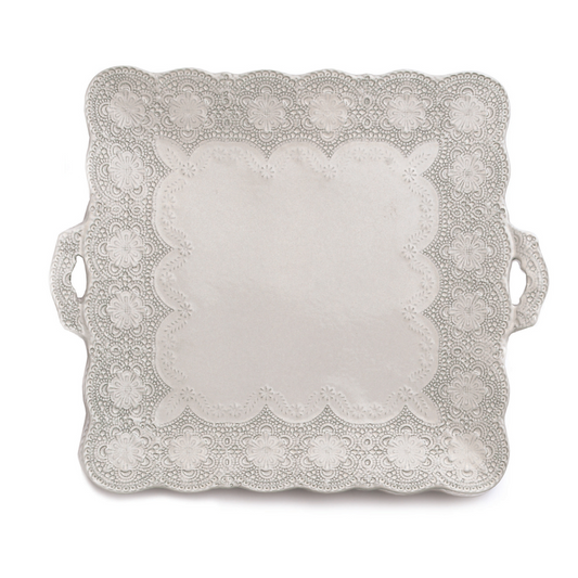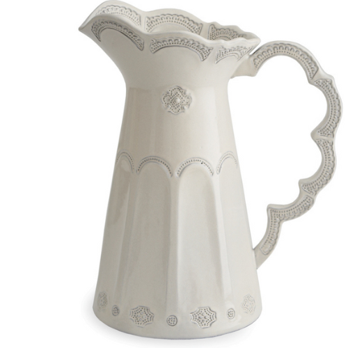 Beautiful handmade Italian black clay ceramic with a delicate Venetian inspired design that is romantic and refined. Offered in White and Antique.