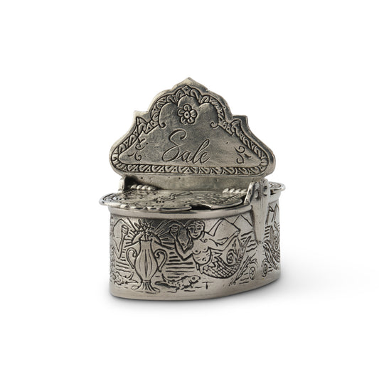 Vintage Beaded Pewter Salt Cellar with Spoon