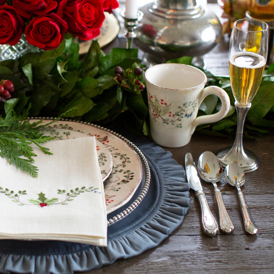 Set the perfect scene for your holiday gatherings with our elegant selection of festive linens, tablecloths, dishes, and tableware.
