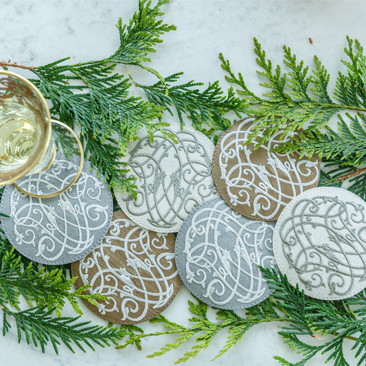Mini Wreath Round Ruffle Velvet Coaster Set - New