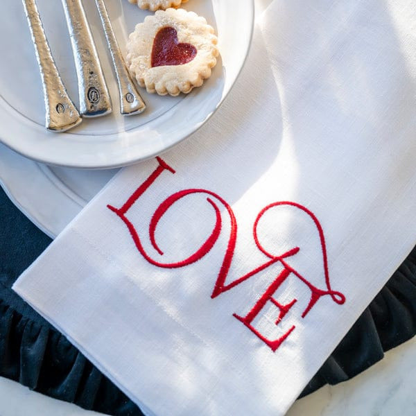 Celebrate the love in your home with a splash of color this season. 100% Linen, perfect for any kitchen or bath.