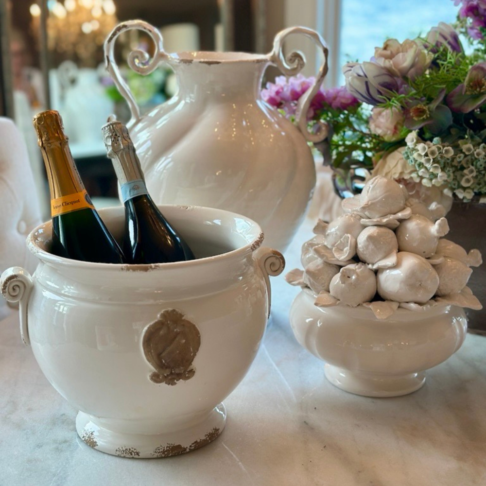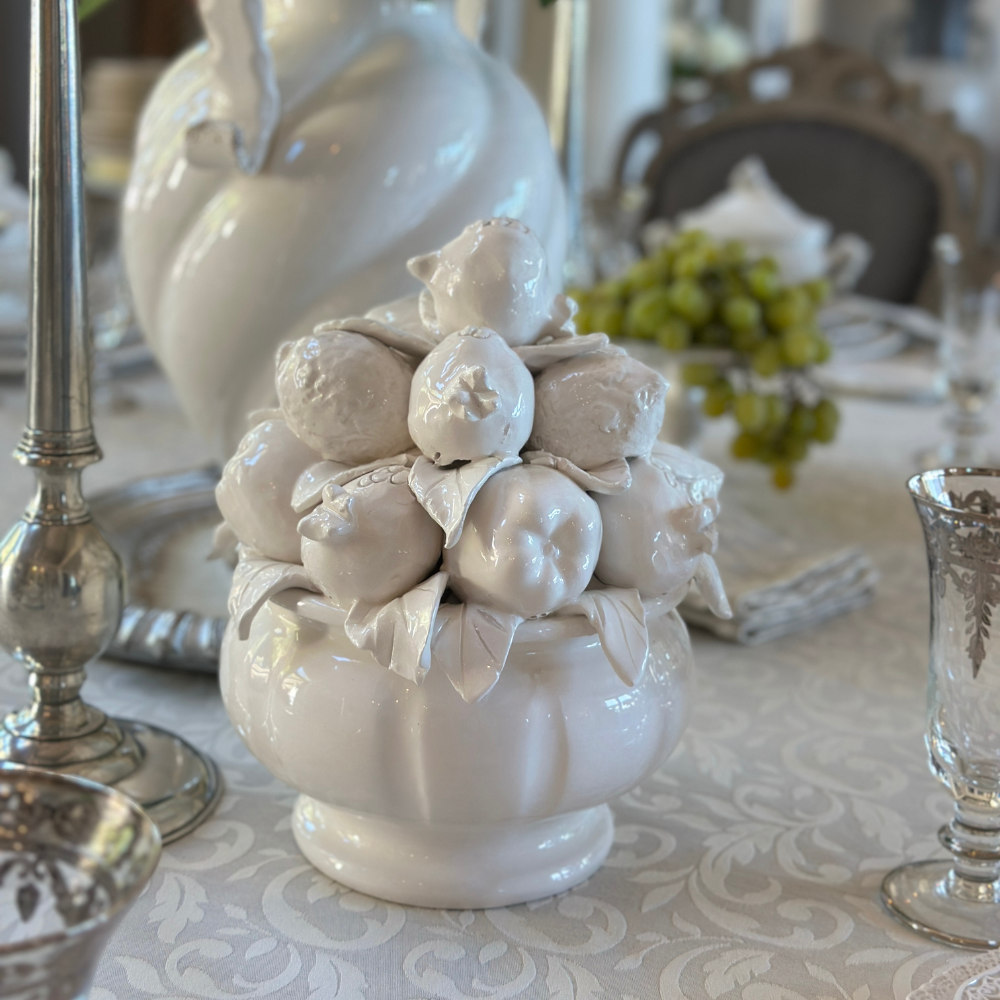 Our Scavo pieces add old world charm to any room with their beautiful antique-like aging treatment. The Scavo Fruit Bowl Topiary is a perfect centerpiece, it will add an Italian regal flair to any room.