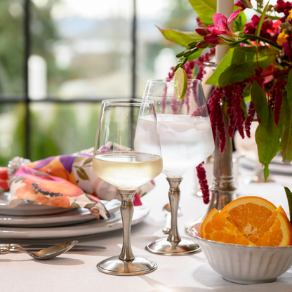 Why choose? Our New Siena Glassware features a fashionable glass contour with a classic, soft curved pewter stem creating a unique, eye-catching look. Offered in three shapes, White Wine, Red Wine and Champagne Flute. Salute!