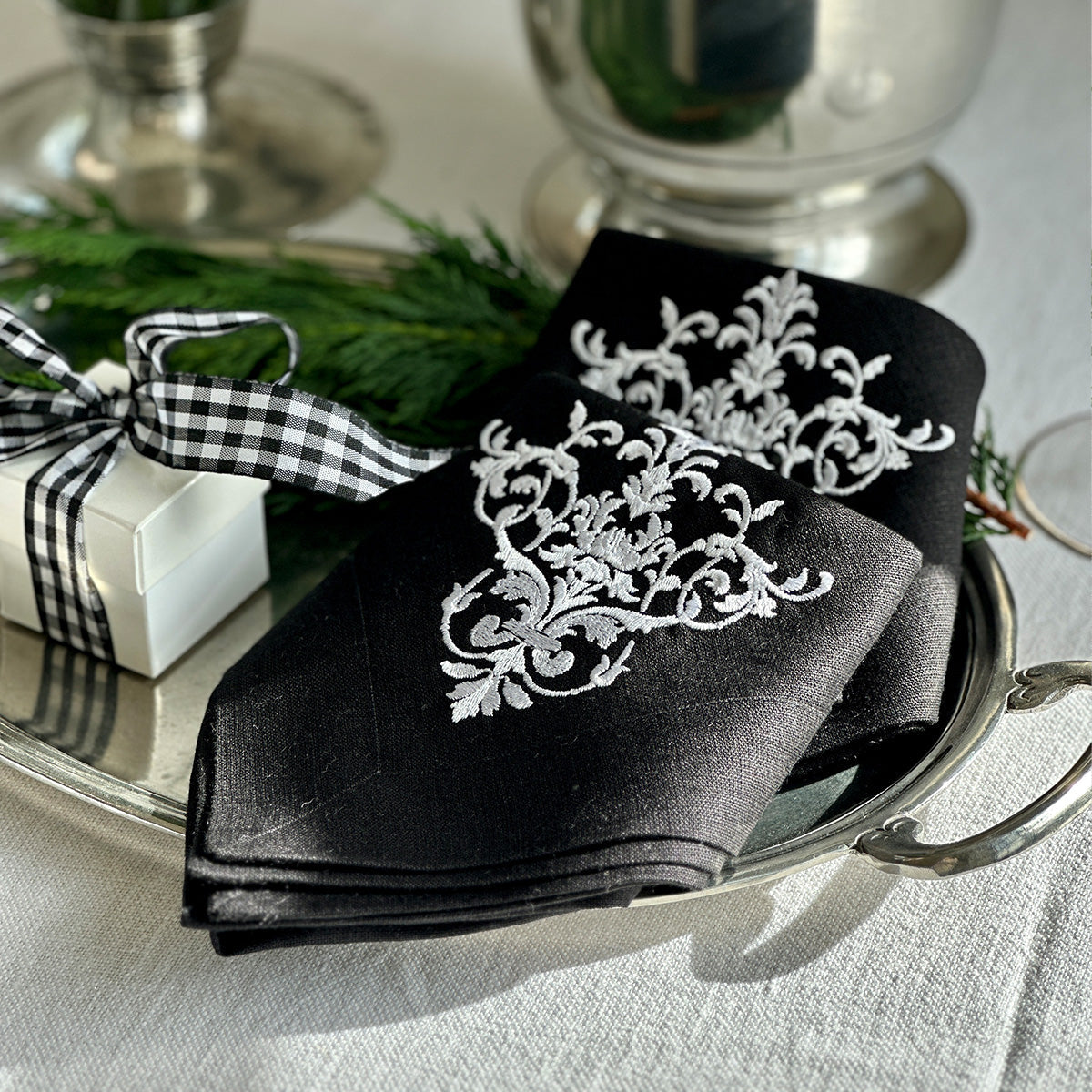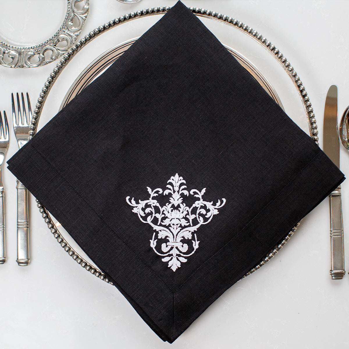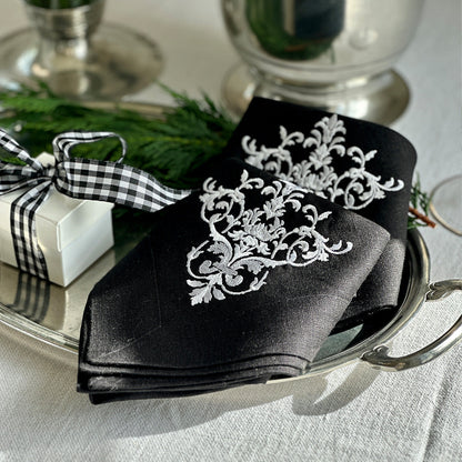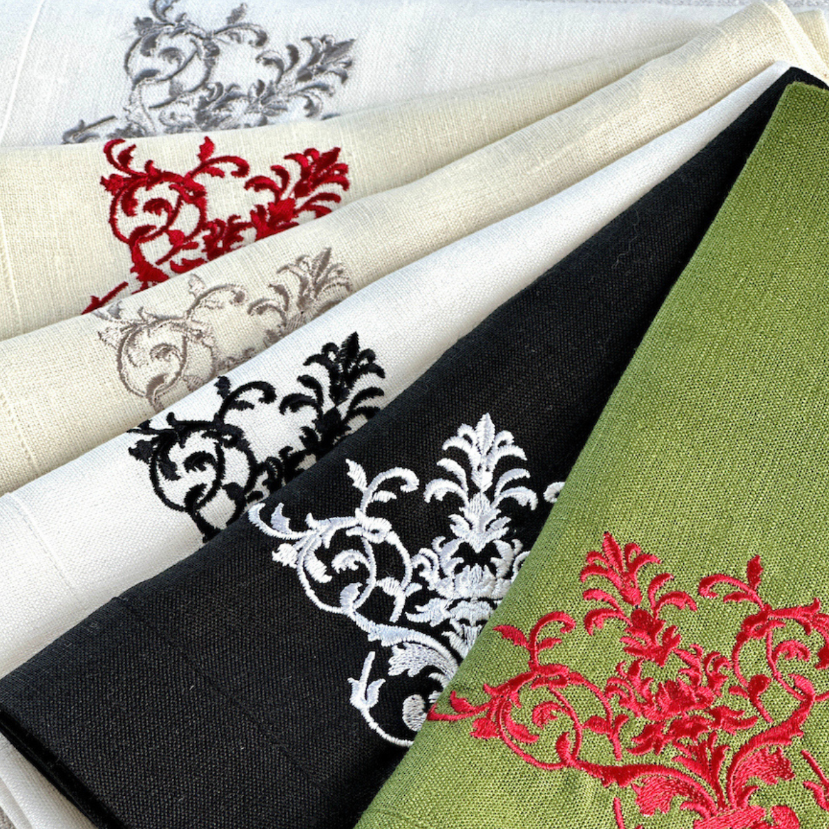 Add timeless elegance to your table with this beautiful 100% European linen napkin with our Victorian pattern. Embroidery colors are designed to complement our favorite tabletop collections. This napkin adds beauty to any part of your home.