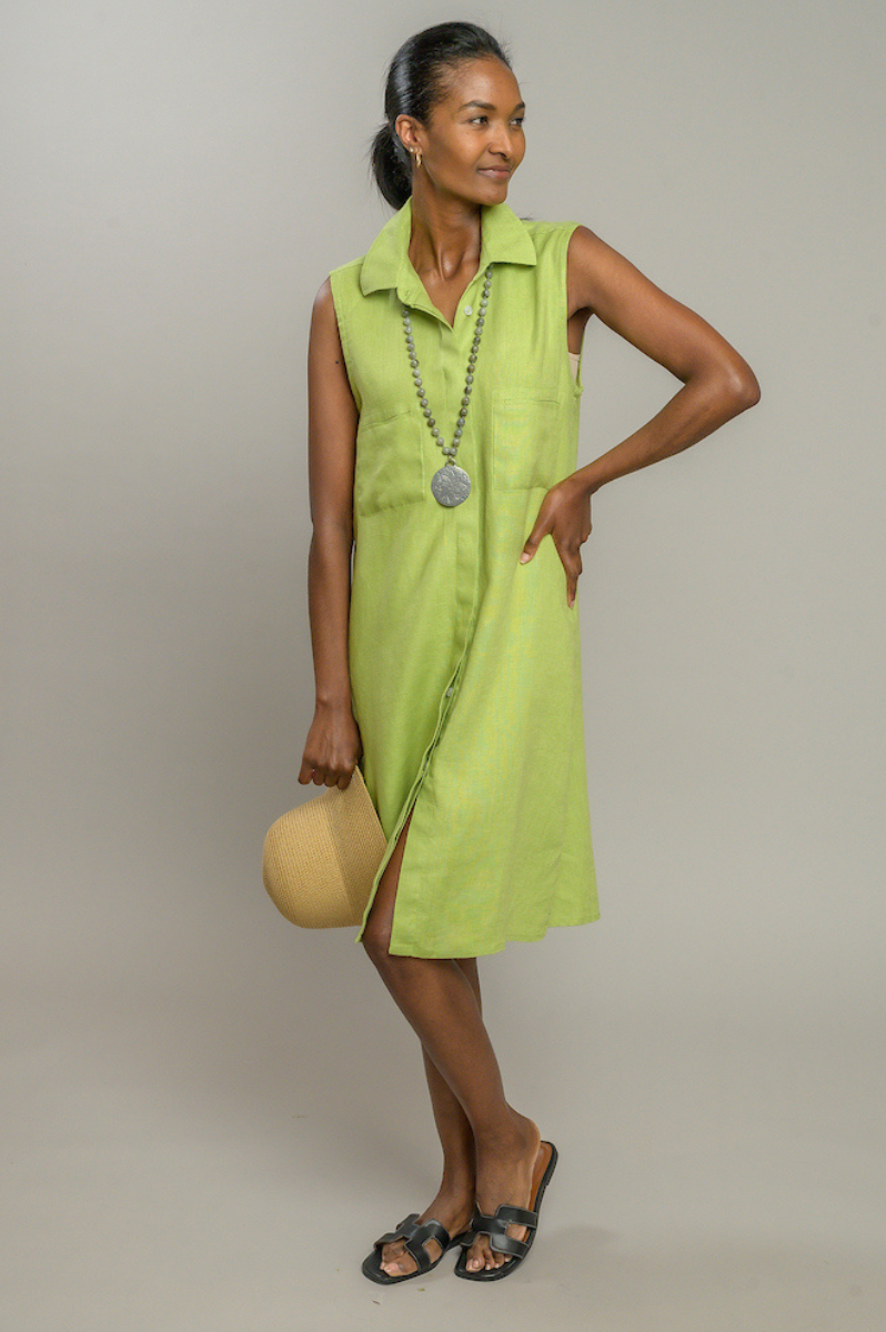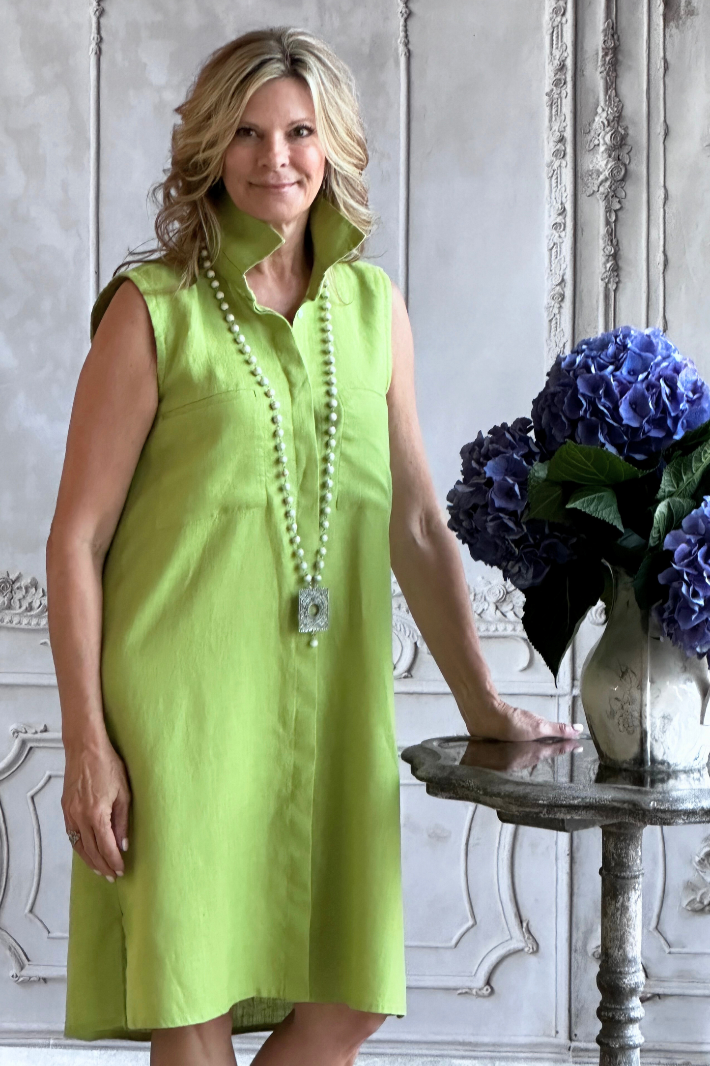 This stunning collared, sleeveless linen dress is a longer version of our Whitney Sleeveless Tunic. A perfect Summer dress or coverup, a great pairing with our Iris Kimono.