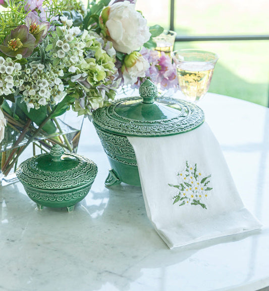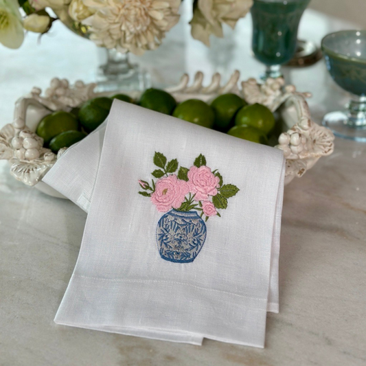 Chinoiserie Jar with Roses Linen Towel
