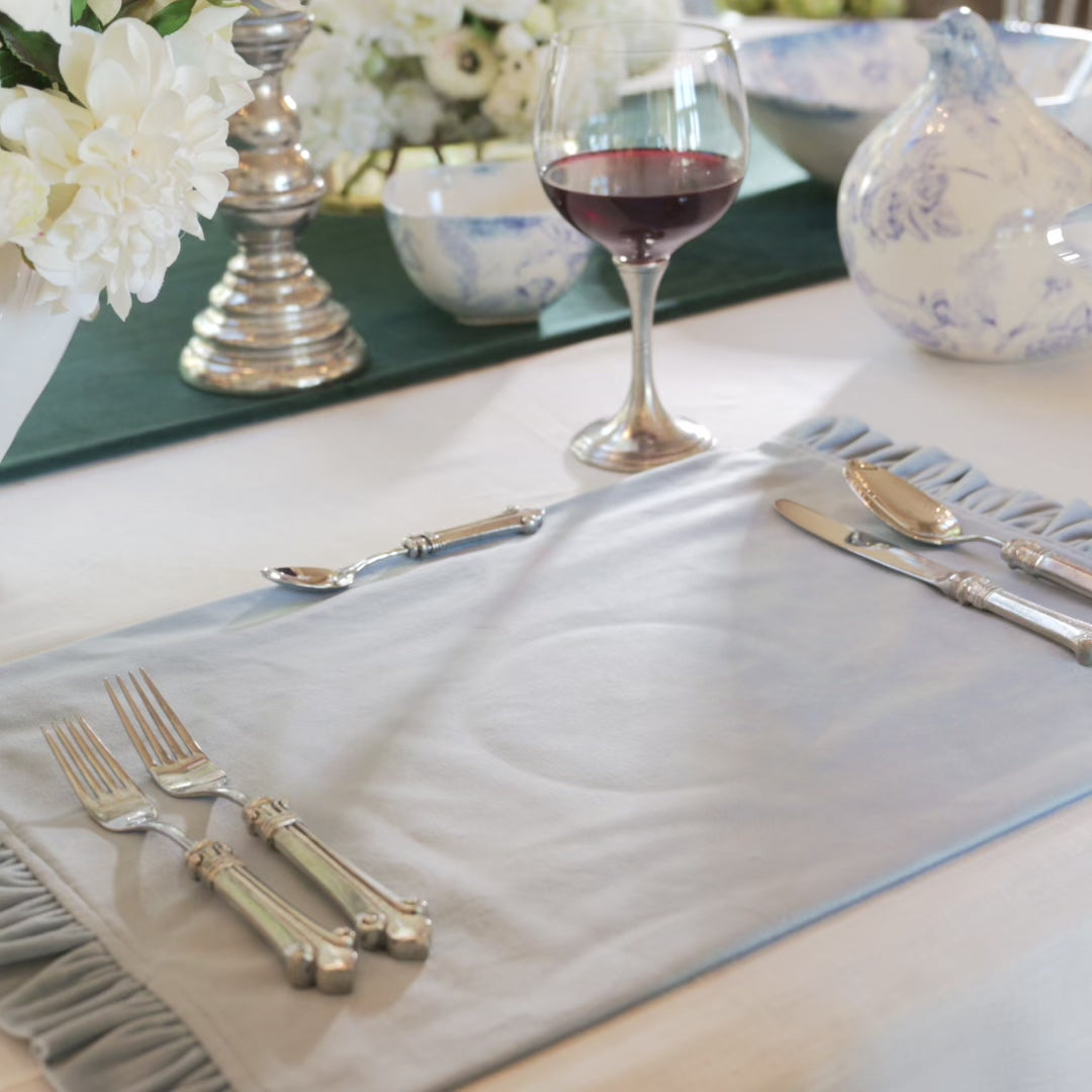 Our Giulietta Collection, light, beautiful and romantic is the result of truly extraordinary artistry. The design is applied to the ceramic by hand, fired and then hand painted with a sponge before being fired a second time. Little wonder it is so fair! Offered in both blue and gray. Hand made in Tuscany.