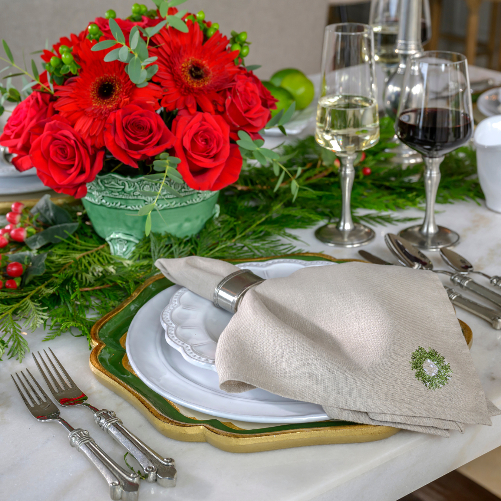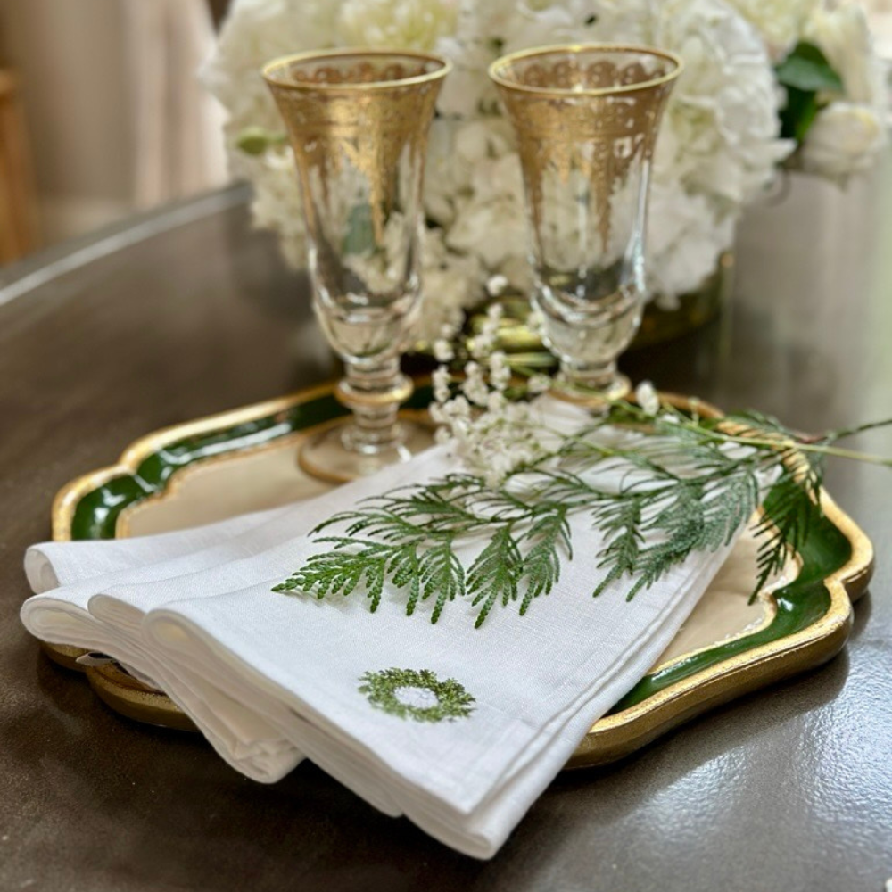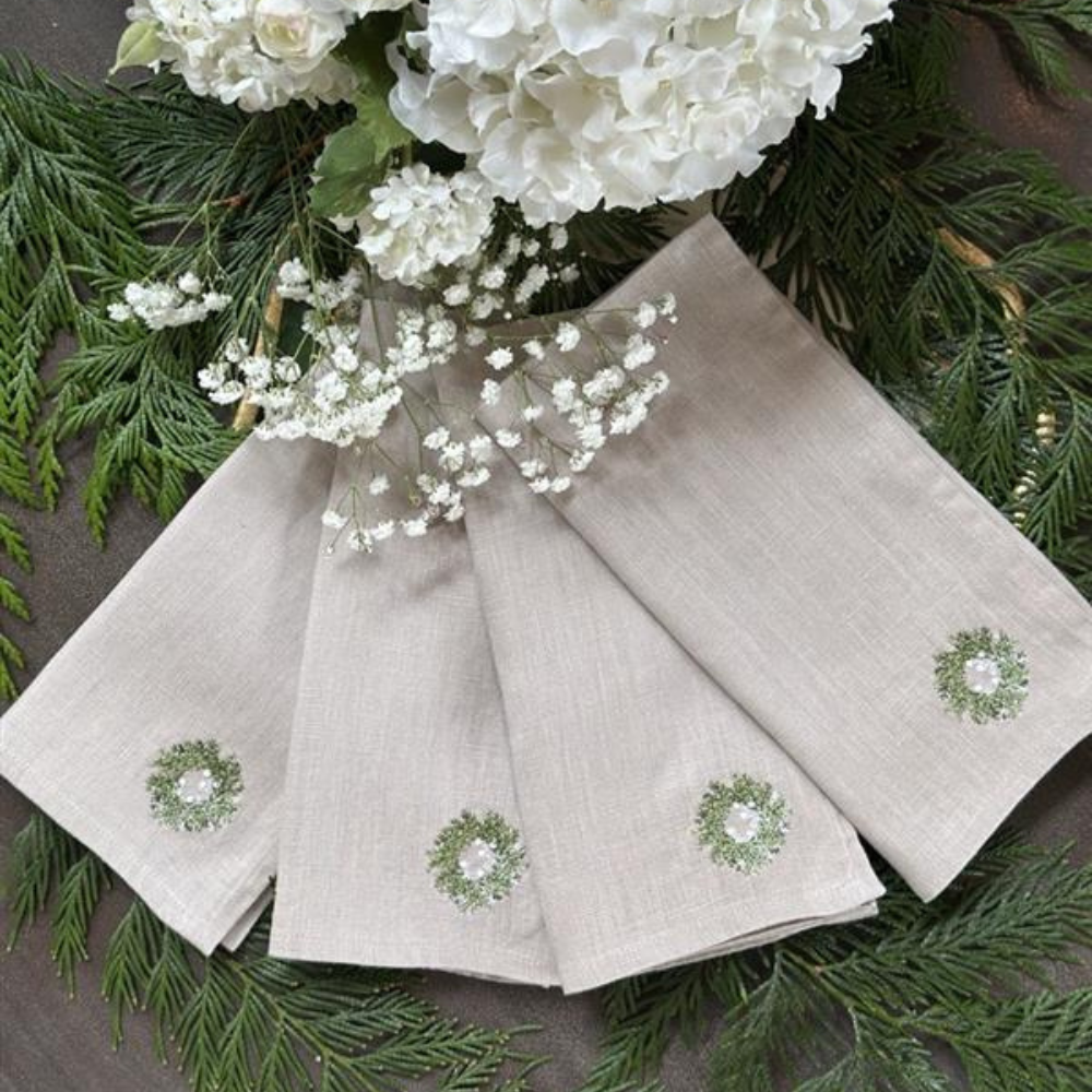 Elevate your holiday table with the Mini Wreath Napkin Set, a charming addition that blends festive elegance with subtle sophistication. Each 100% linen napkin adds a refined seasonal touch that enhances your dining experience. Perfect for creating an inviting atmosphere, this set of 4 napkins brings warmth and style to your celebrations.
