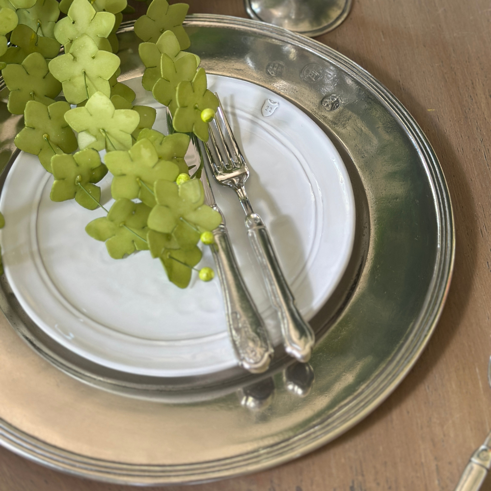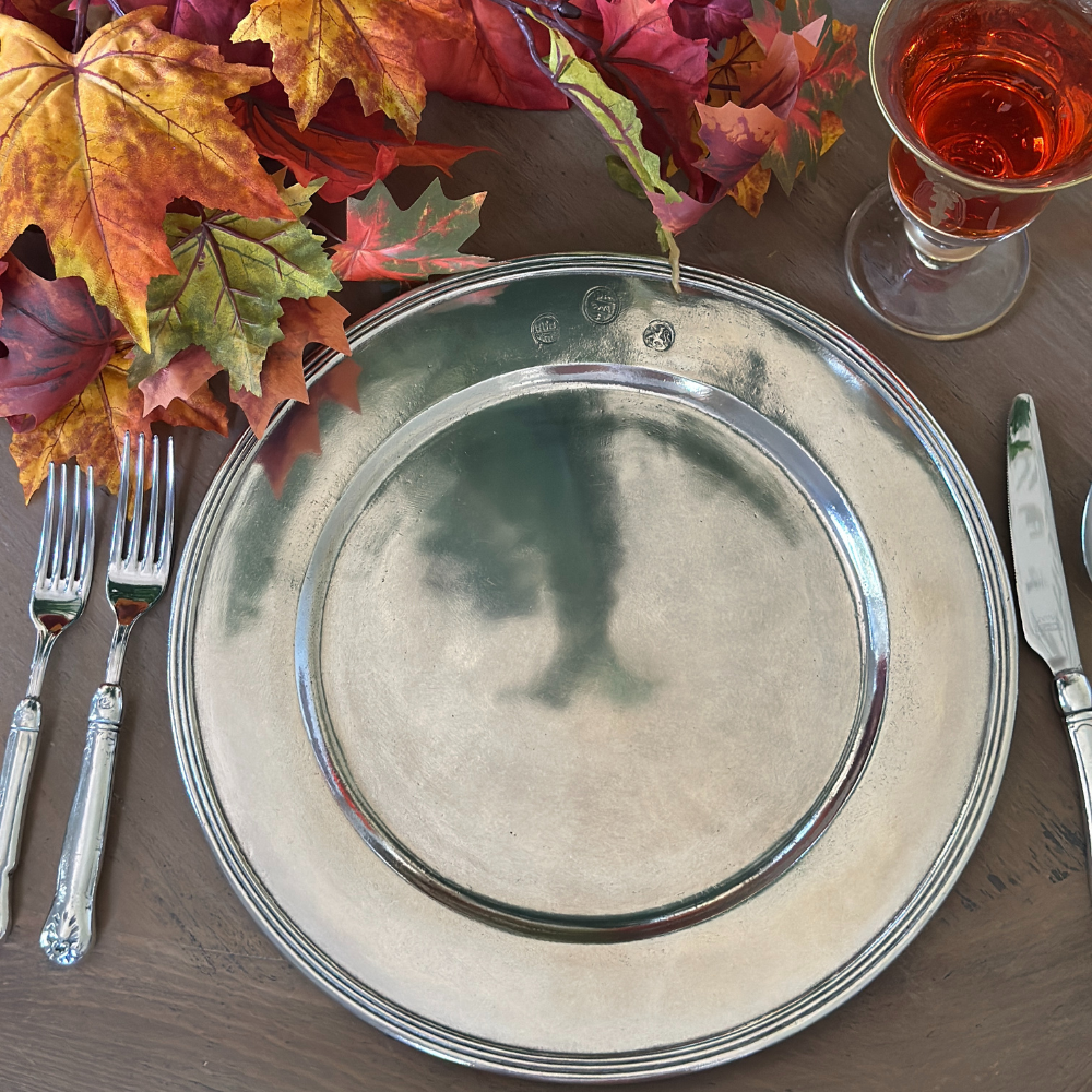 Our Peltro Charger is a truly unique piece, and those who own them, love them. They create a magnificent and truly distinctive look to your home or table. Nothing embodies our maxim, "today's treasures and tomorrow's heirlooms" more than these chargers. Use it as a charger or as a serving piece. Made much the same way they were centuries ago; they will be in your family forever. Italian pewter, Hand made in the Lombardy Region of Italy.