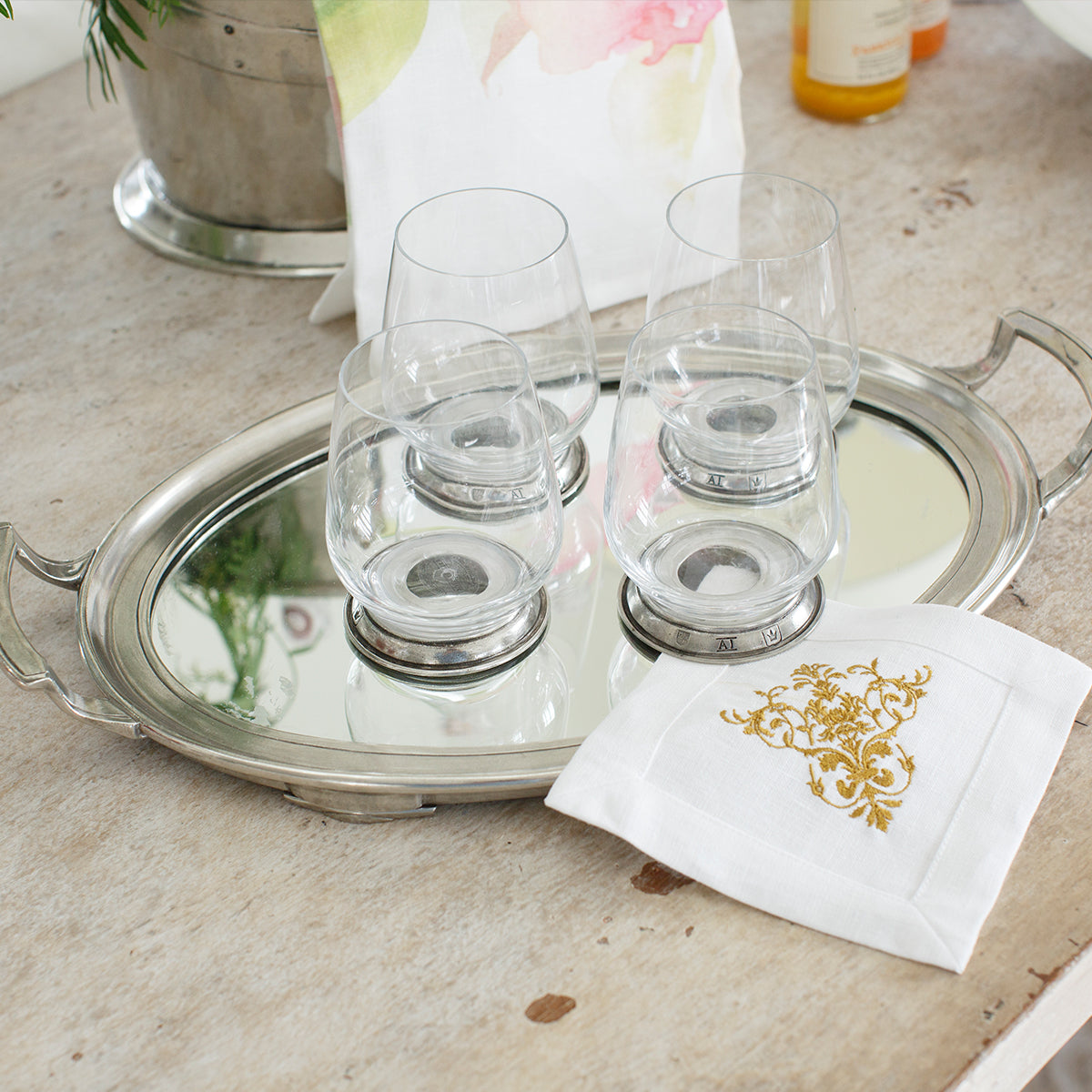 Shakespeare may not have been referring to our Verona Collection but so many of our customers share his sentiment. Graceful forms of glittering glass stand atop handcrafted pewter stems. True vintage heirloom pieces that will carry memories across generations. Italian pewter and glass; hand made near Verona in the Lombardy Region of Italy.