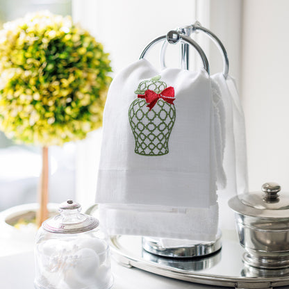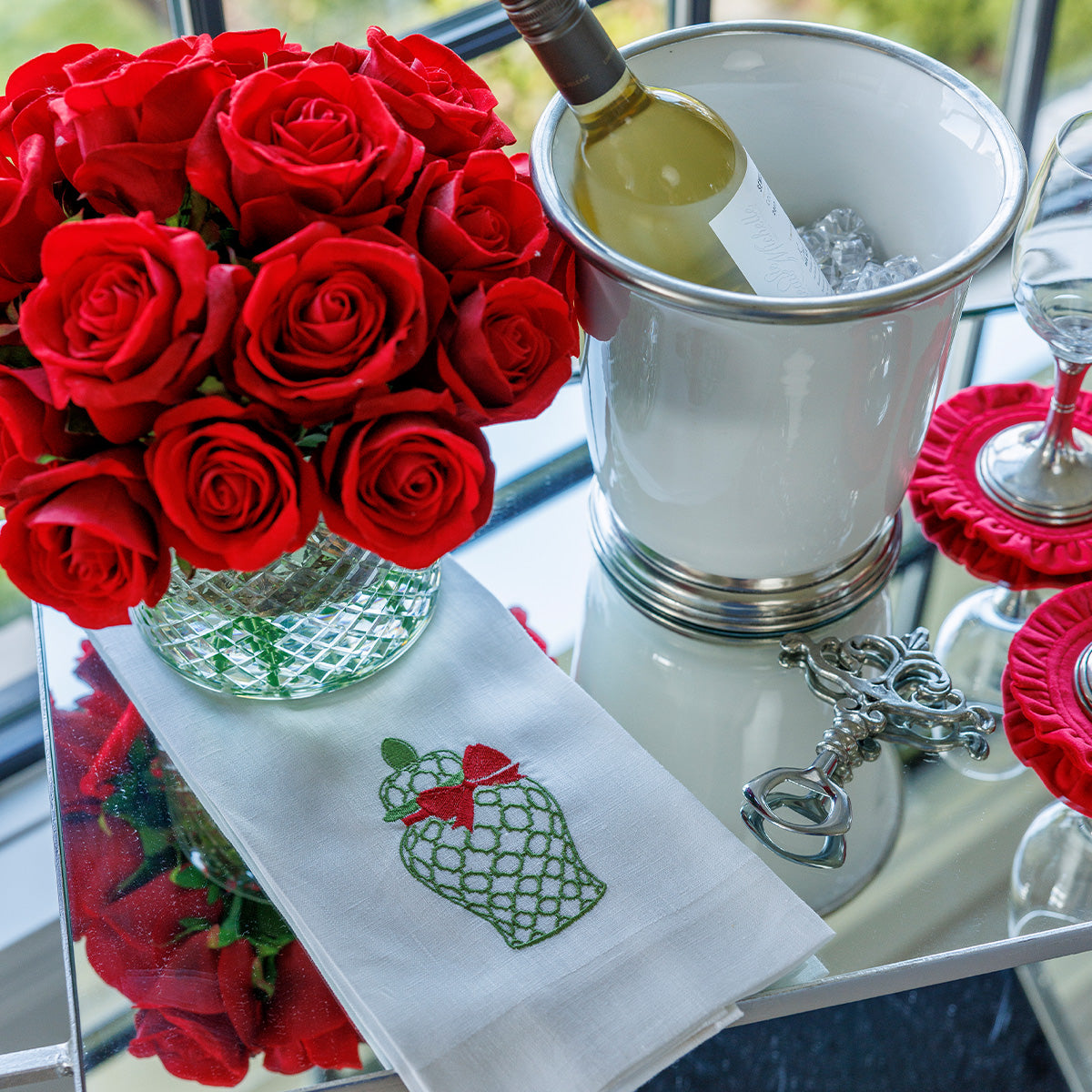 This beautiful 100% European linen embroidered towel offers the combination of chic elegance and remarkable versatility. Dress up your kitchen, bath or holiday table with this vibrant pear green and red towel.