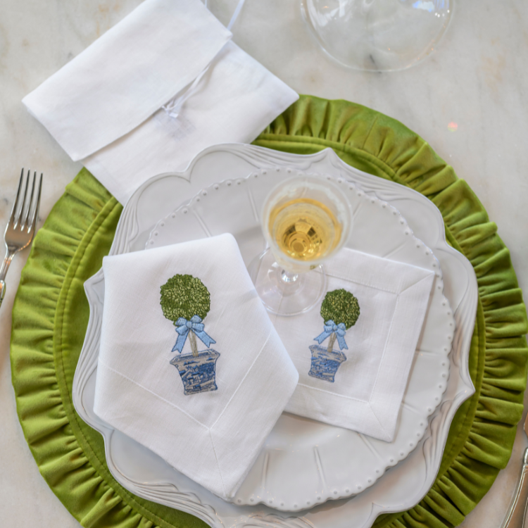 Chinoiserie Boxwood Topiary Cocktail Napkin Set