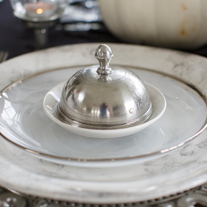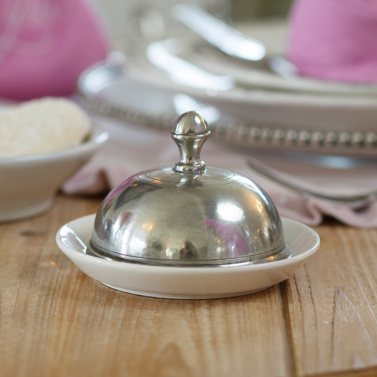 The Tuscan Round Butter Dish is a unique, elegant piece. The pewter lid brings curated European charm to your table. Hand-finished with meticulous craftsmanship, it's a refined essential that transforms everyday dining into an occasion worthy of appreciation.