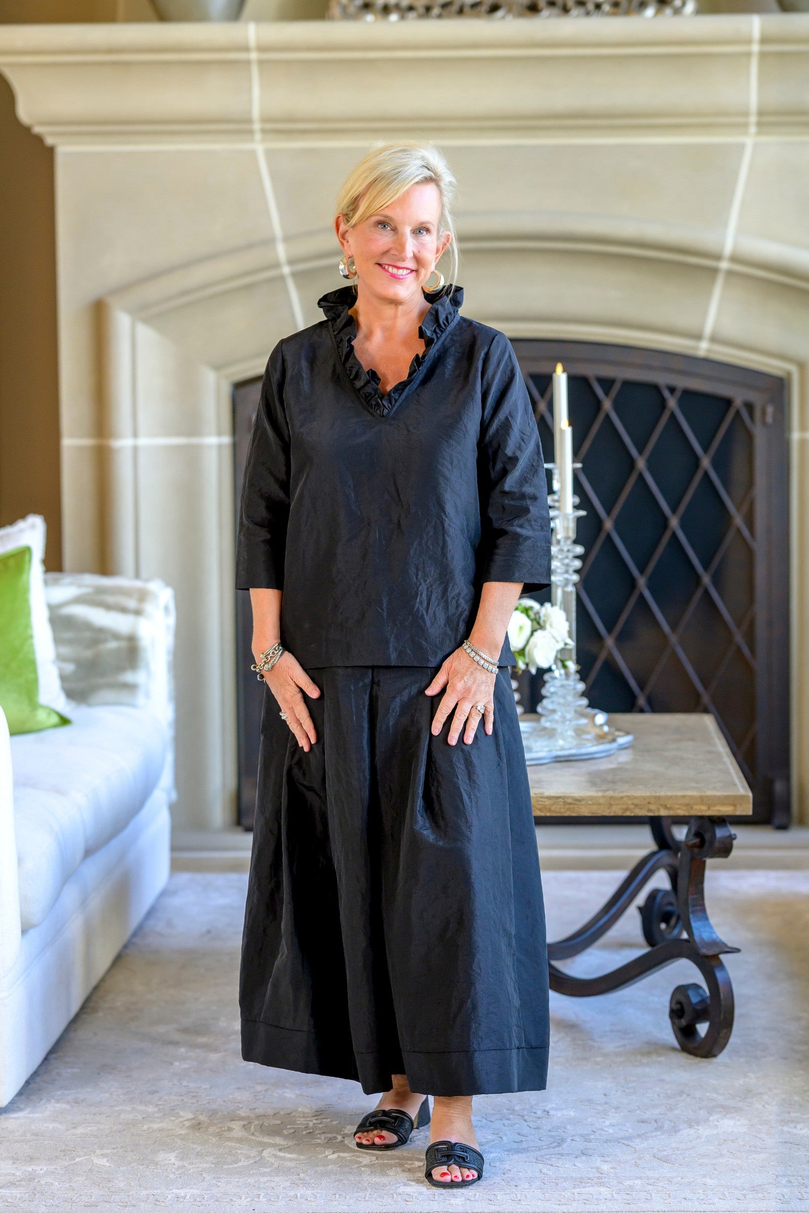 The Darcy Top is inspired by the Francesca Dress - a shirt version of this playful dress! With the elegant ruffle v-neck collar, this top taffeta is both stylish and practical. Perfect for any occasion, from brunch to a night out with the girls. Sure to become a staple in your wardrobe.