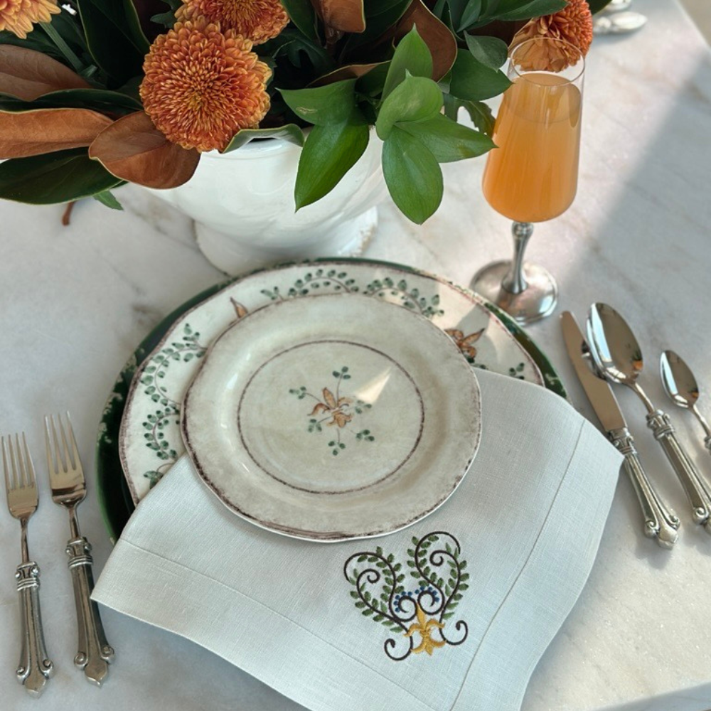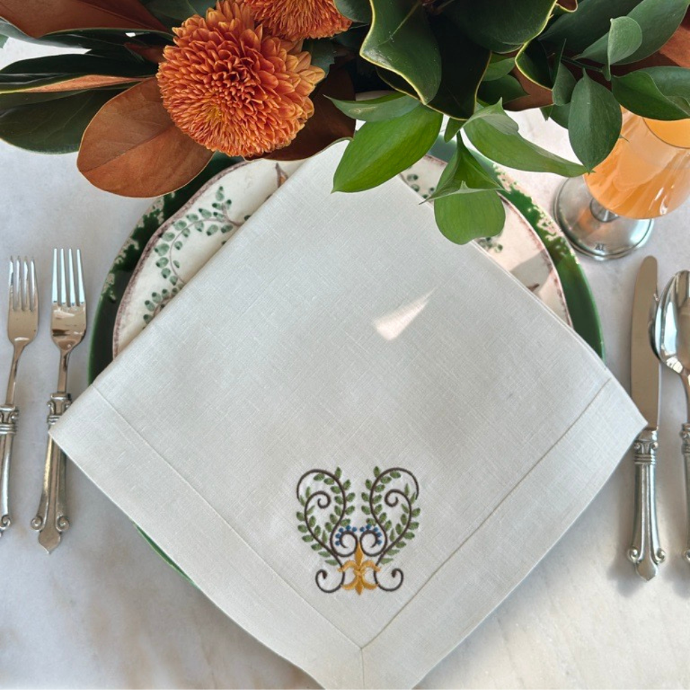 Add a dash of Italian flair to your table with the Medici Scroll Large Napkin on 100% luxurious cream linen! Made to pair perfectly with the stunning Medici Collection, its elegant scroll pattern adds a touch of sophistication to any table setting. Perfect for formal occasions or everyday luxury, this napkin turns every dining moment into a delightful occasion.