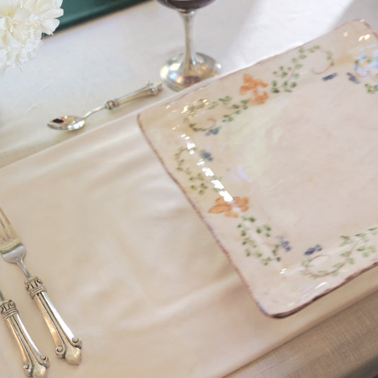 Before the Renaissance (Rinascimento in Italian), there were the Medicis, the dynastic Italian banking family that financed so many of the period’s transformational achievements. It is a fitting name for this popular collection that has been part of Arte Italica for decades. Its shapes and subtle colors create an old world feel. Unmistakably handmade and hand painted in soft cream shades accented with an interpretation of the Medici's beautiful, signature, giglio (fleur-de-lis) and vine motifs in rich hues of green, blue and orange. Italian ceramic, Hand made in the Umbria Region of Italy.