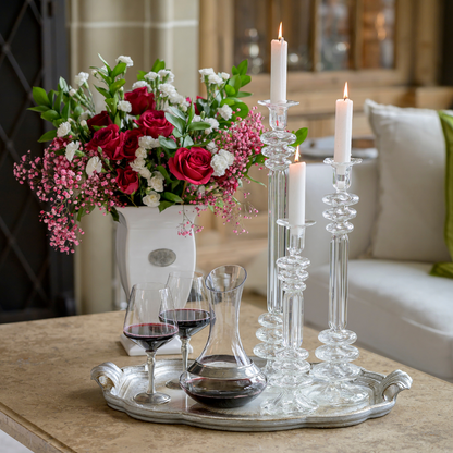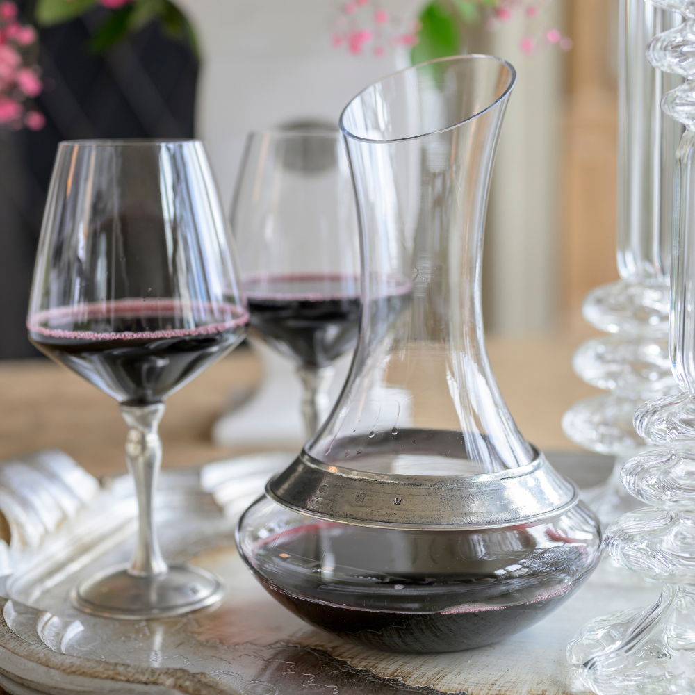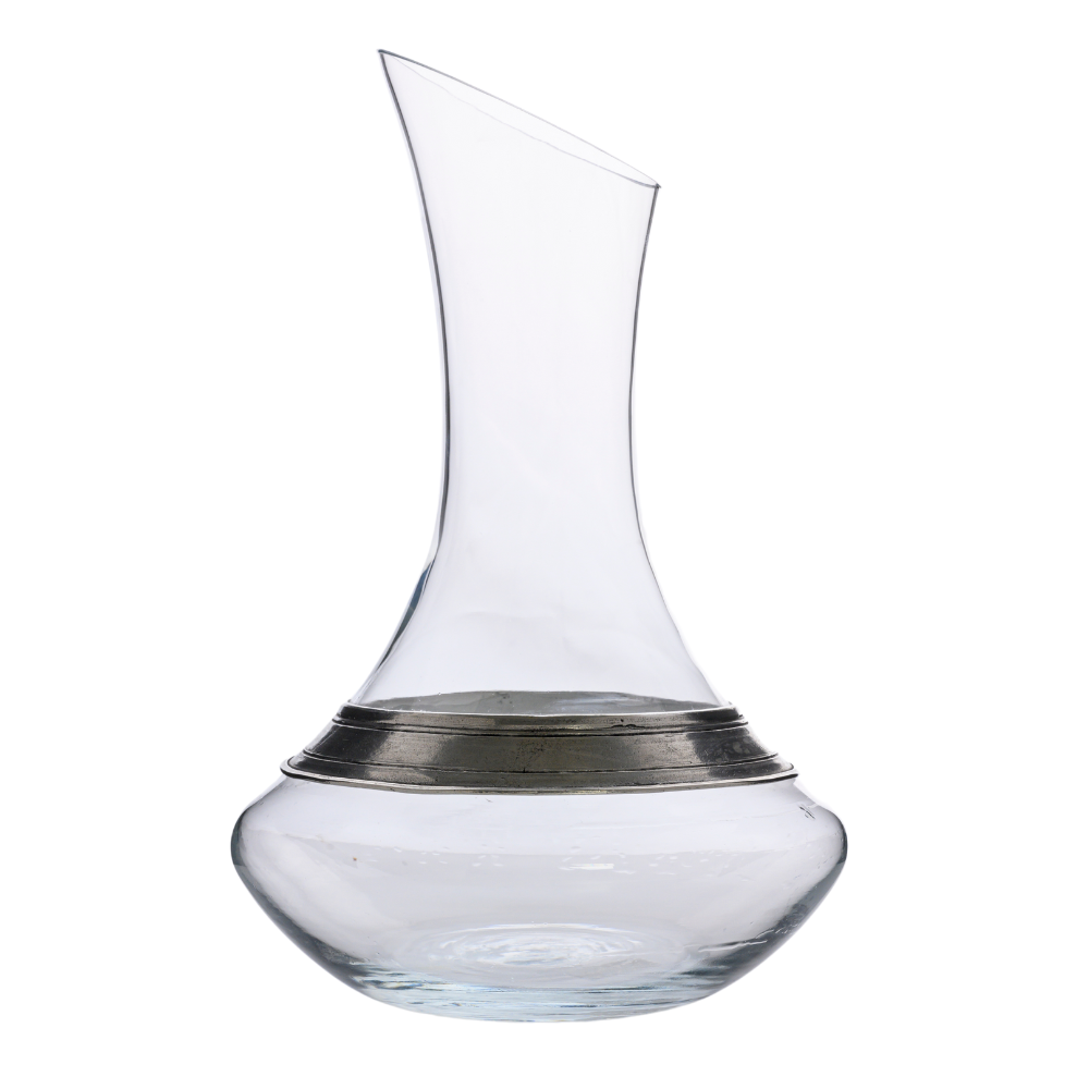 There is no more beautiful way to decant a bottle of wine than our Taverna Wine Decanter. Its beautiful shape and pewter ring is make it an elegant addition to the table while decanting. Italian pewter and glass, Hand made in the Lombardy Region of Italy.