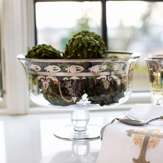Florentine master artisans hand paint luxurious platinum on intricate hand etched designs. Stunning and timeless work of art.
