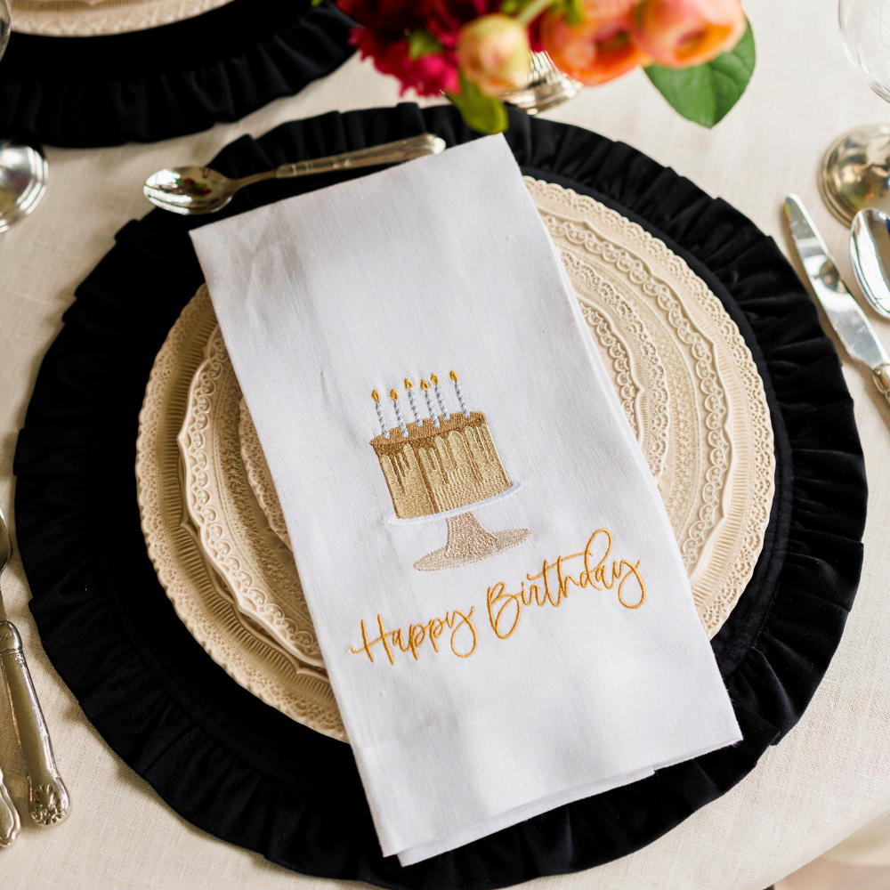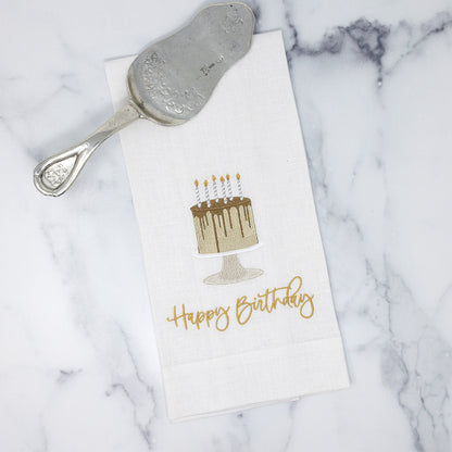 Happy Birthday Cake Linen Towel