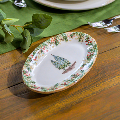 Buon Natale! Our best-selling Natale Collection is one of the most popular lines in the industry. Festive, yet soft, it features majestic snowy evergreens surrounded by enchanting pine boughs and winterberries. All hand painted, no two pieces are alike. Customers love its "wintery" look, perfect for Christmas celebrations but so beautiful throughout the winter season.