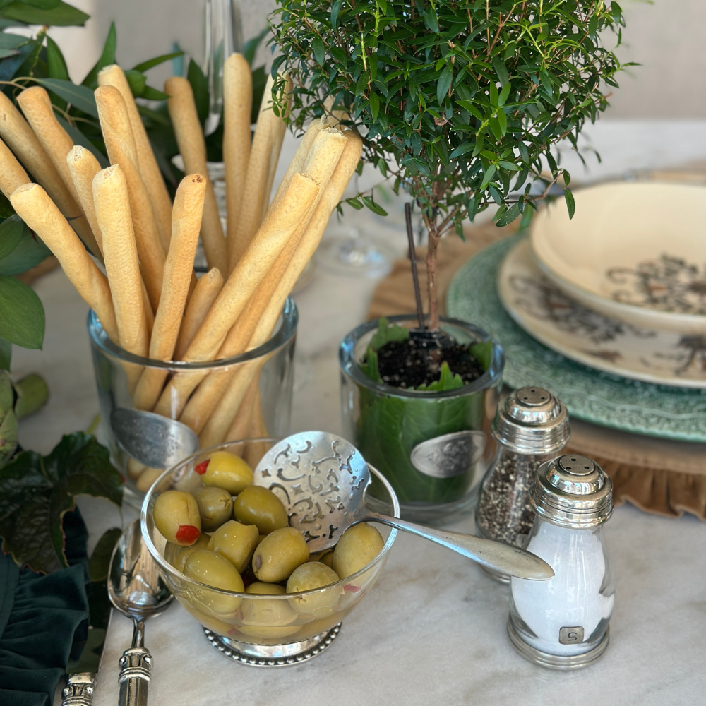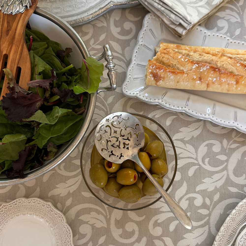 Elevate your entertaining with this Vintage Slotted Spoon, crafted in pewter with an antique-inspired design. Perfect for serving charcuterie and delicate appetizers, its elegant slots allow for easy draining while adding a touch of timeless sophistication to your table setting. Ideal for those who appreciate classic style combined with practical functionality.