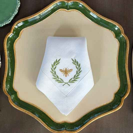 Green Italian Bee Large Linen Napkin - NEW