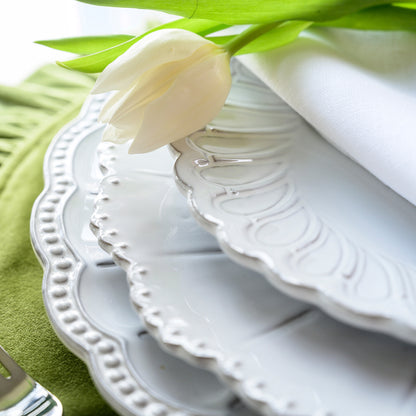 Art for your table! Made of coveted Italian stoneware, this collection is as durable as it is stunning. Taking its name from the beautiful white glaze that highlights Bella Bianca's magnificent patterns. These include Ribbon, Beaded, Rosette, Lace and Pique; which can be combined together to create endless works of art.