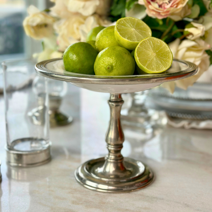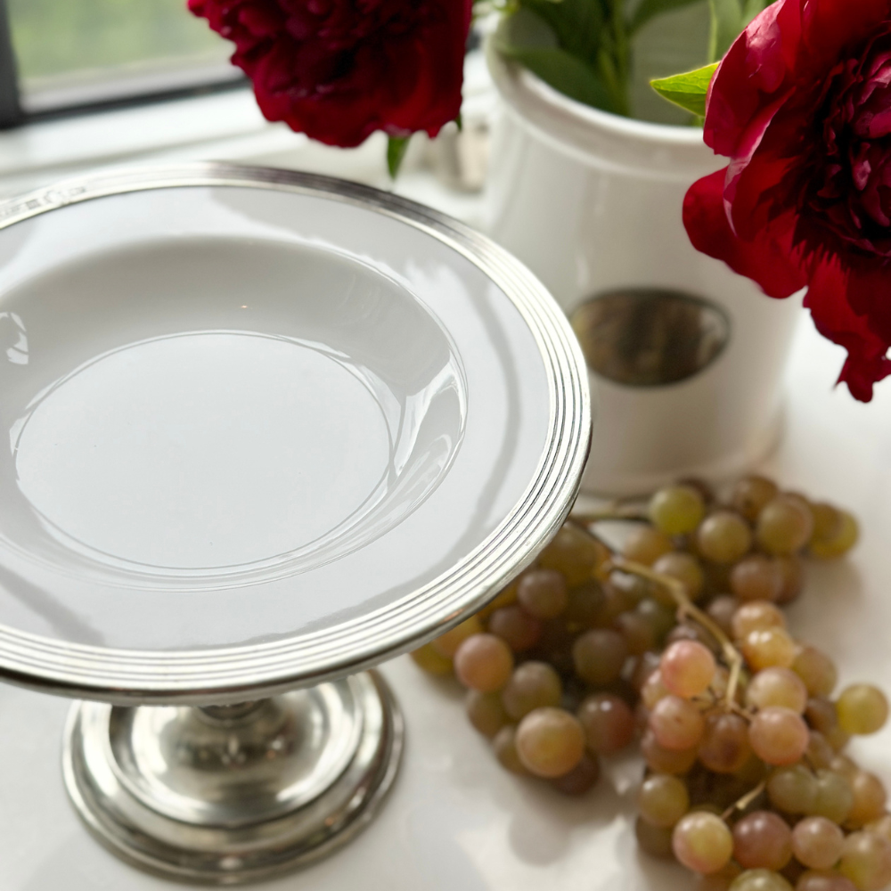 The Tuscan Pedestal Dish is perfect for serving a small dessert, appetizer or fruit. You can even use it for a flower arrangement! The shallow design is ideal for both serving and display purposes.  Its elevated form adds architectural interest to your tablescape while maintaining the refined simplicity that defines timeless entertaining.   Elevate your style!