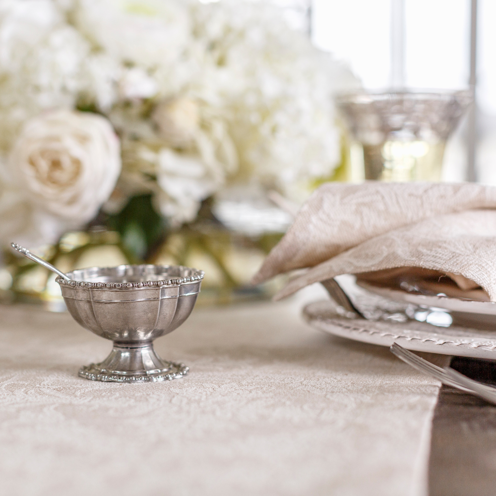 Add timeless elegance for your table or kitchen with this beaded pewter salt cellar with serving spoon. Perfect for a table or to class up a place setting.