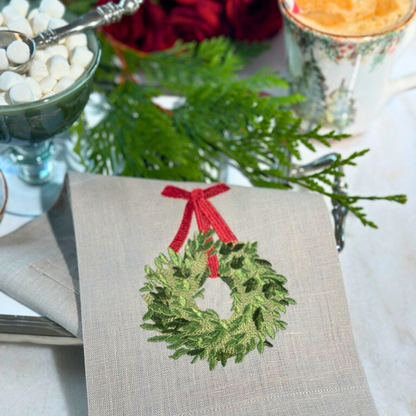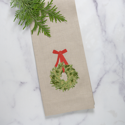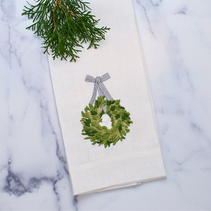 Boxwood Wreath Linen Towel