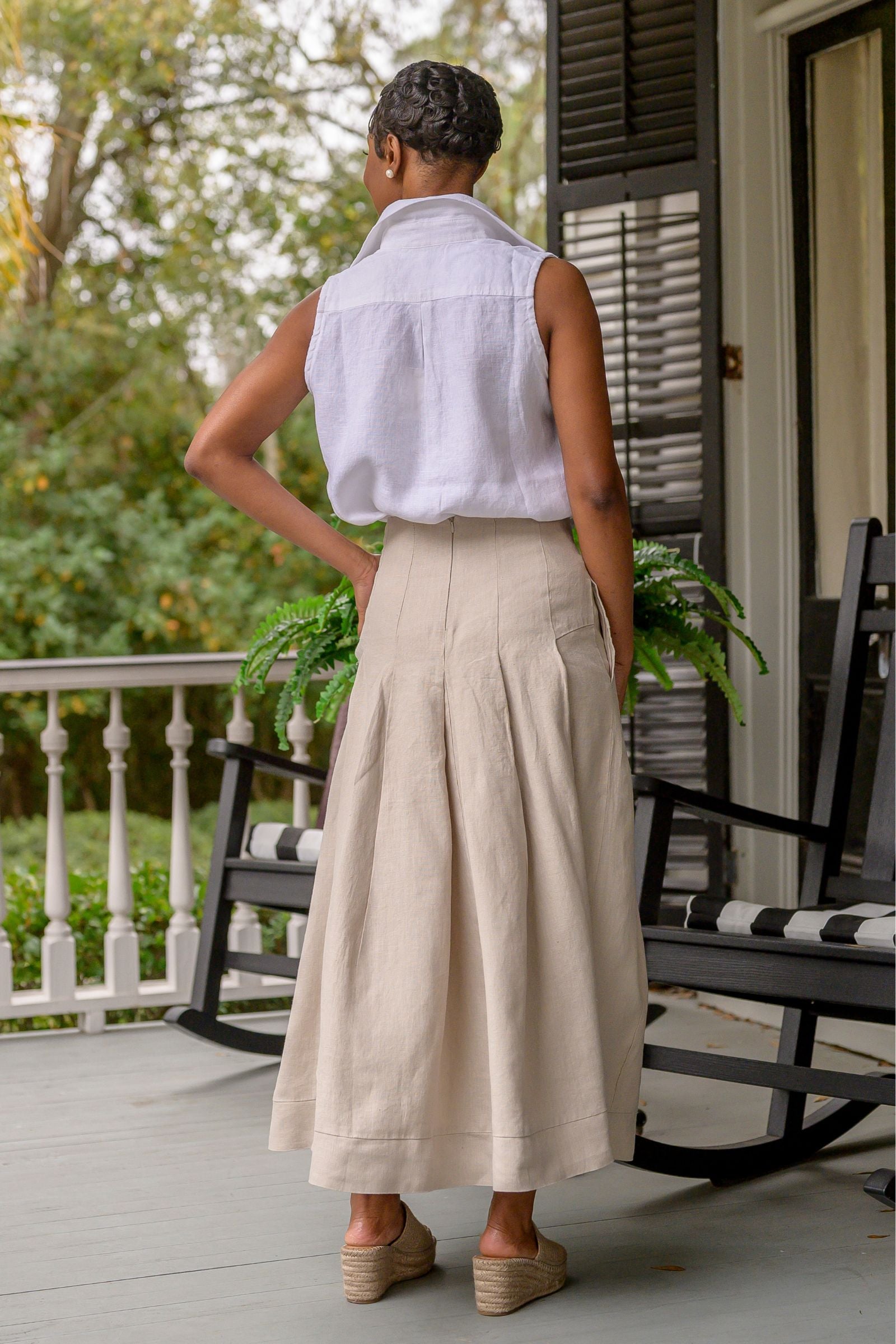 Skirt shown with the Cameron Button-up Shirt and the Caroline Sleeveless Top.