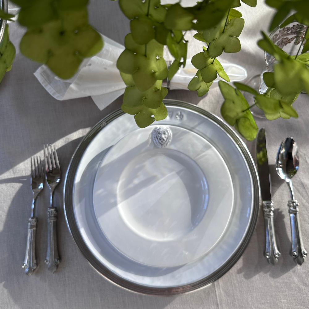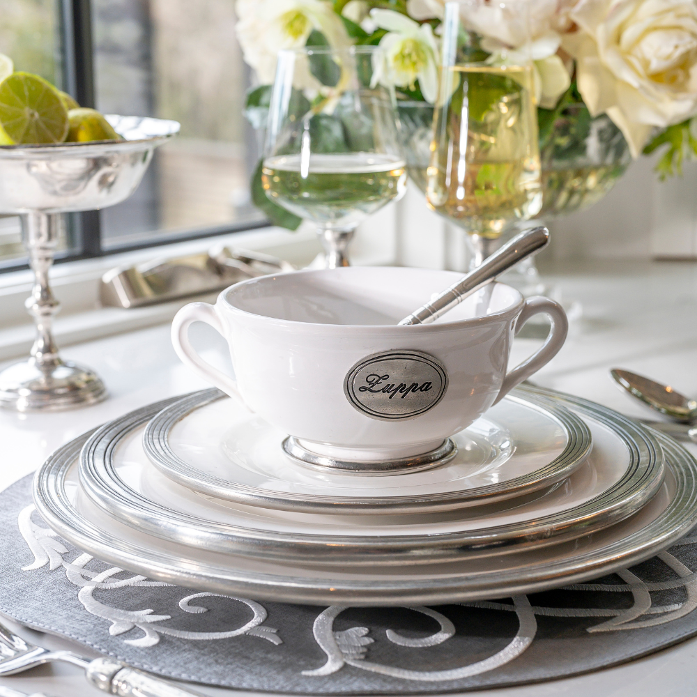 Arte Italica was the first tabletop line in the United States to combine ceramic and pewter when we introduced our Tuscan Collection nearly 30 years ago. It continues to be highly coveted by customers for its elegant, distinctive and authentic look. The patina of the hand rubbed pewter against the beautiful bianco white ceramic creates a look (and feel) like none other. Both classic and contemporary, it is truly timeless; and a collection that can be treasured for generations.