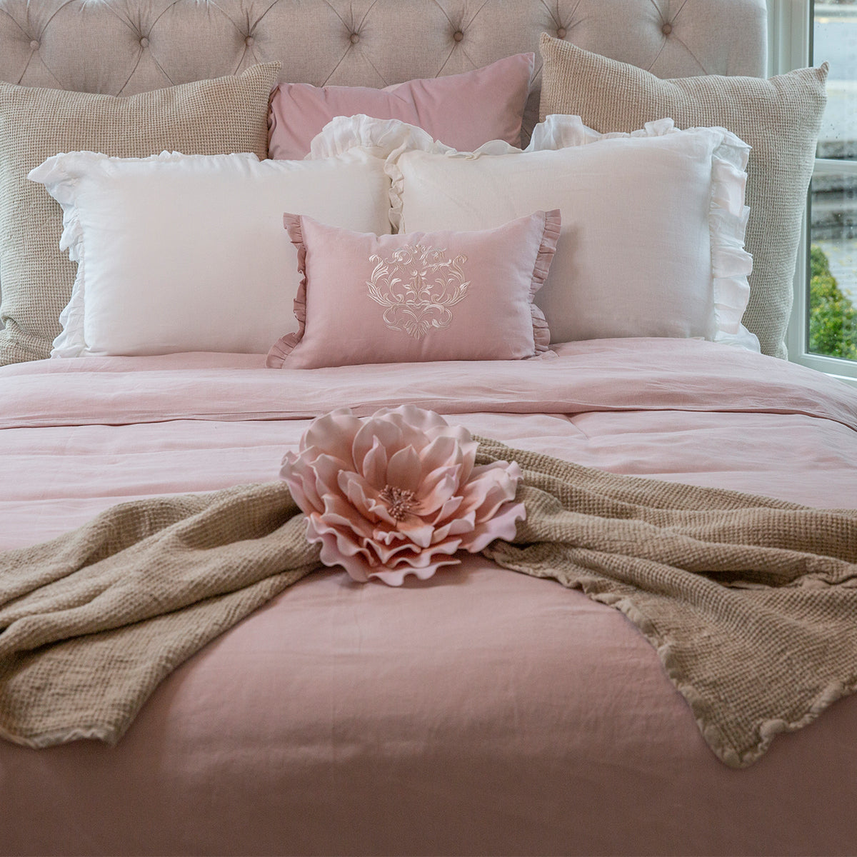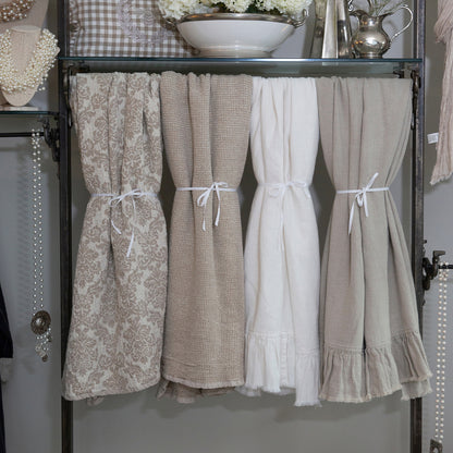 Enjoy the wonder of 100% waffle weaved linen with the great throw blanket. Perfect for the sofa, bed or cozy chair. Throw measures 52" x 64", comes in taupe and has a flax linen edge.