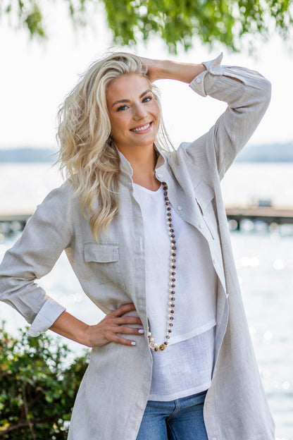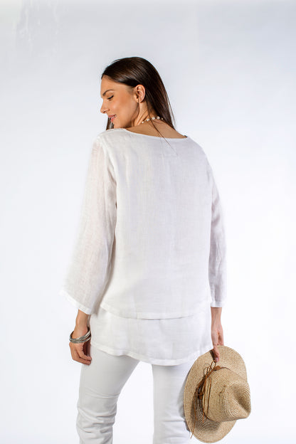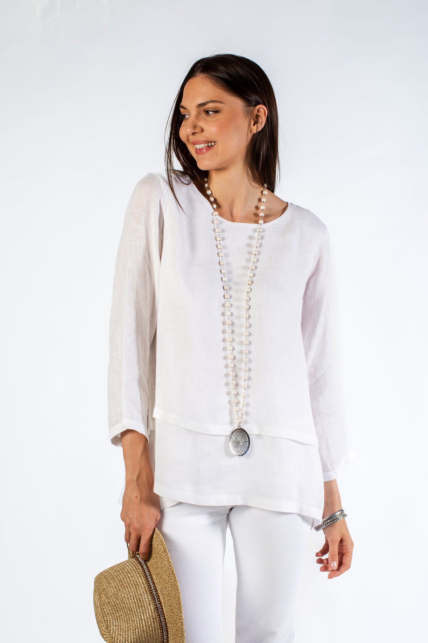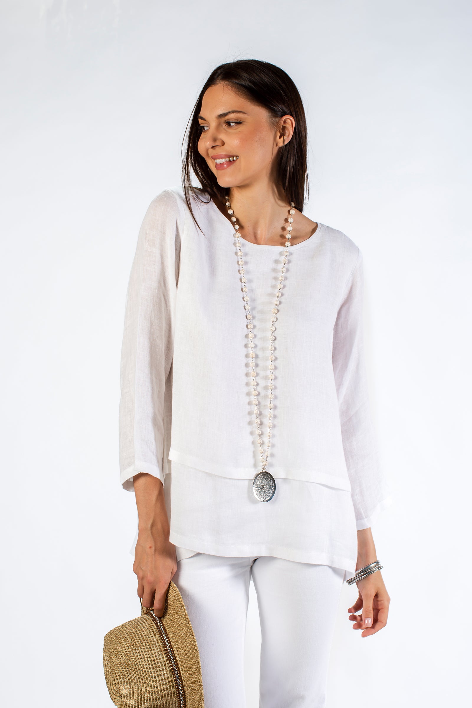 One of our best sellers! The Audrey top is a made of our lightweight linen. The double layers are  flattering and flowy.  The top hits below the waist and is longer in the back. Linen is an amazing heat regulator, so this versatile top can be worn spring to winter. Perfect addition to any wardrobe and for all occasions.