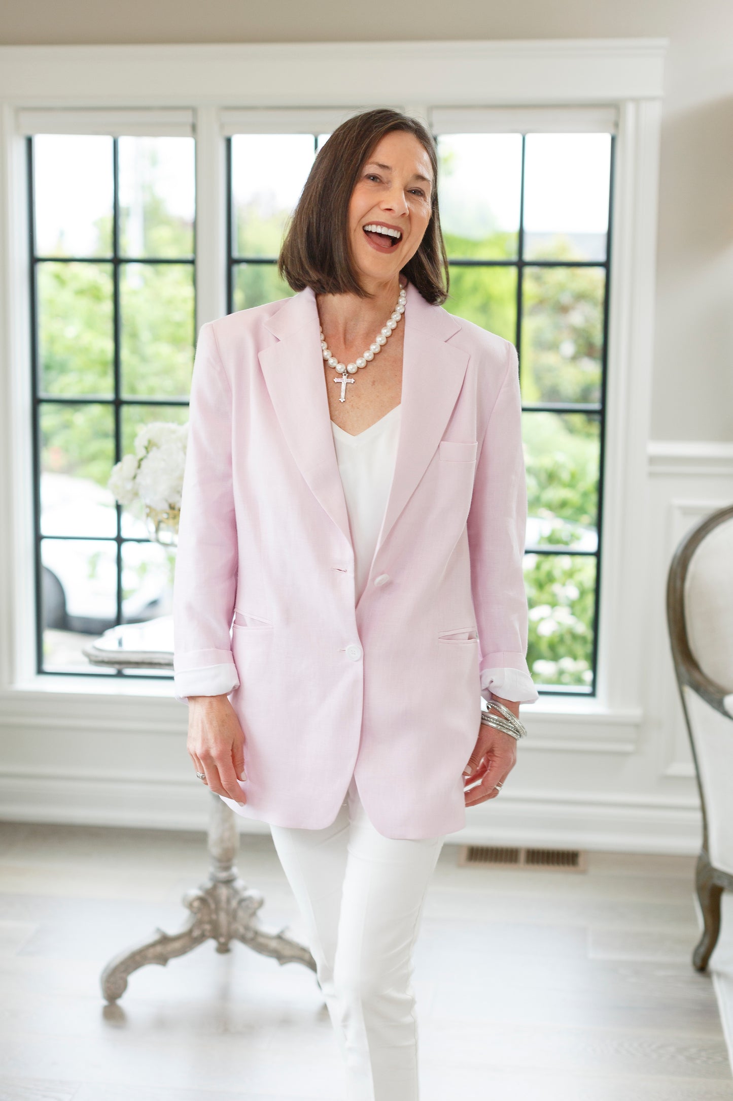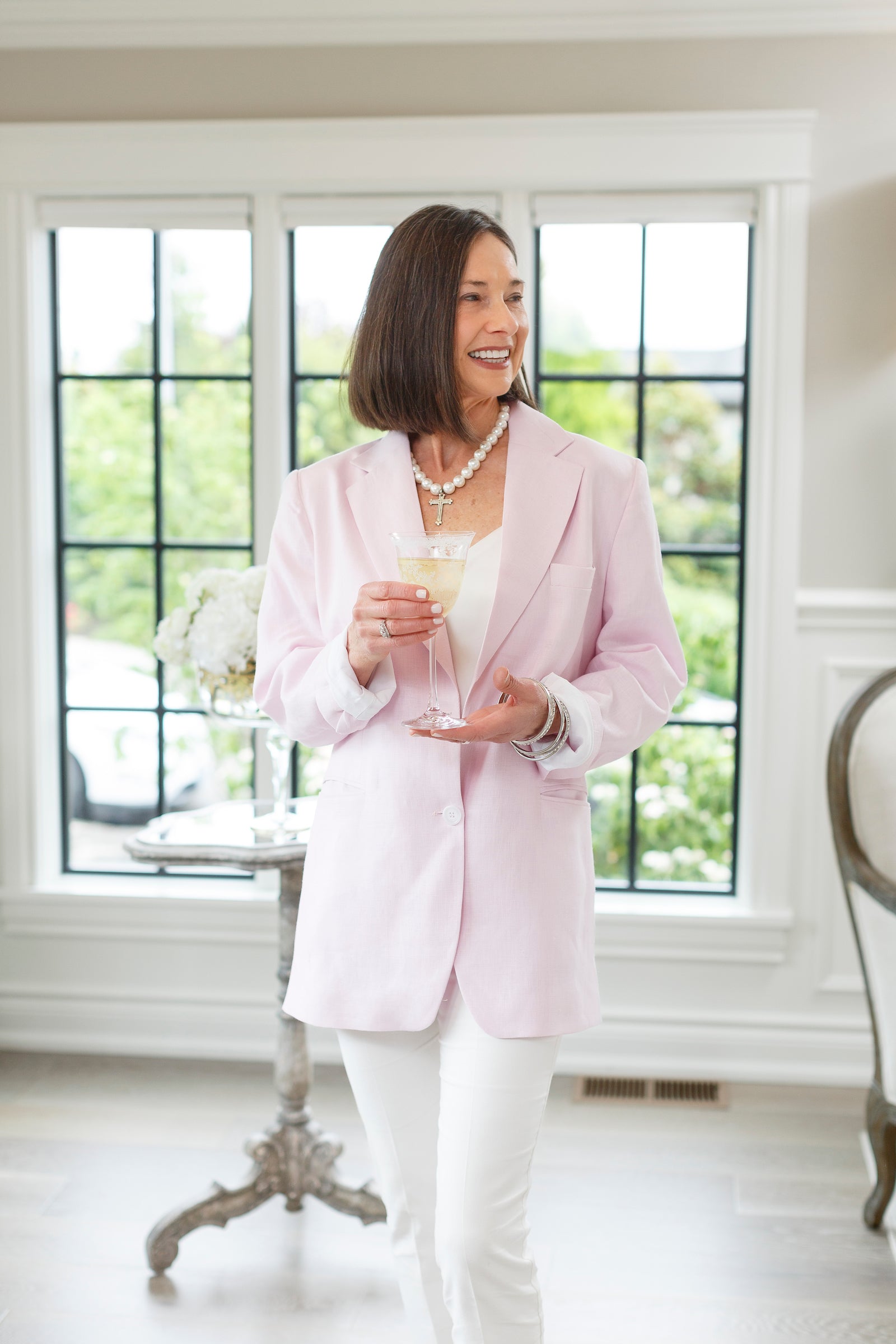 This boyfriend blazer is lightweight, breathable and perfect for all seasons. The linen blend makes it soft to the touch and easy to wear, while the relaxed fit makes it versatile enough to dress up or down depending on your mood. Features two buttons, pockets, and looks amazing with the sleeves cuffed.