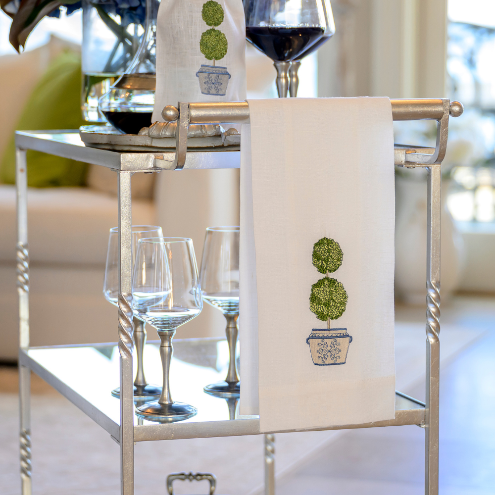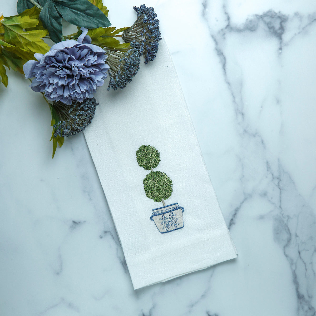 Dress up that kitchen or bath with this beautiful 100% European linen embroidered towel. So many ways to add beauty to any part of your home. Machine wash and iron flat for a crisp look. Measures 17"x29".