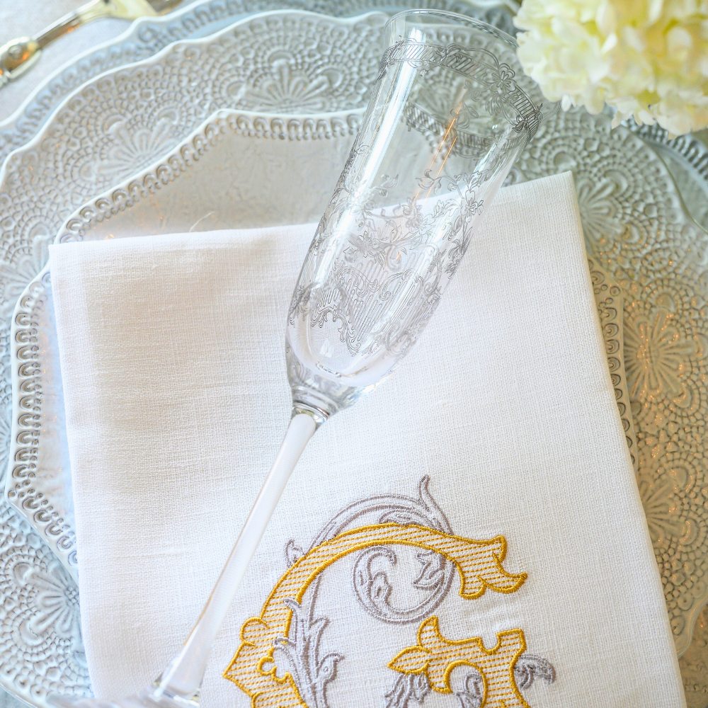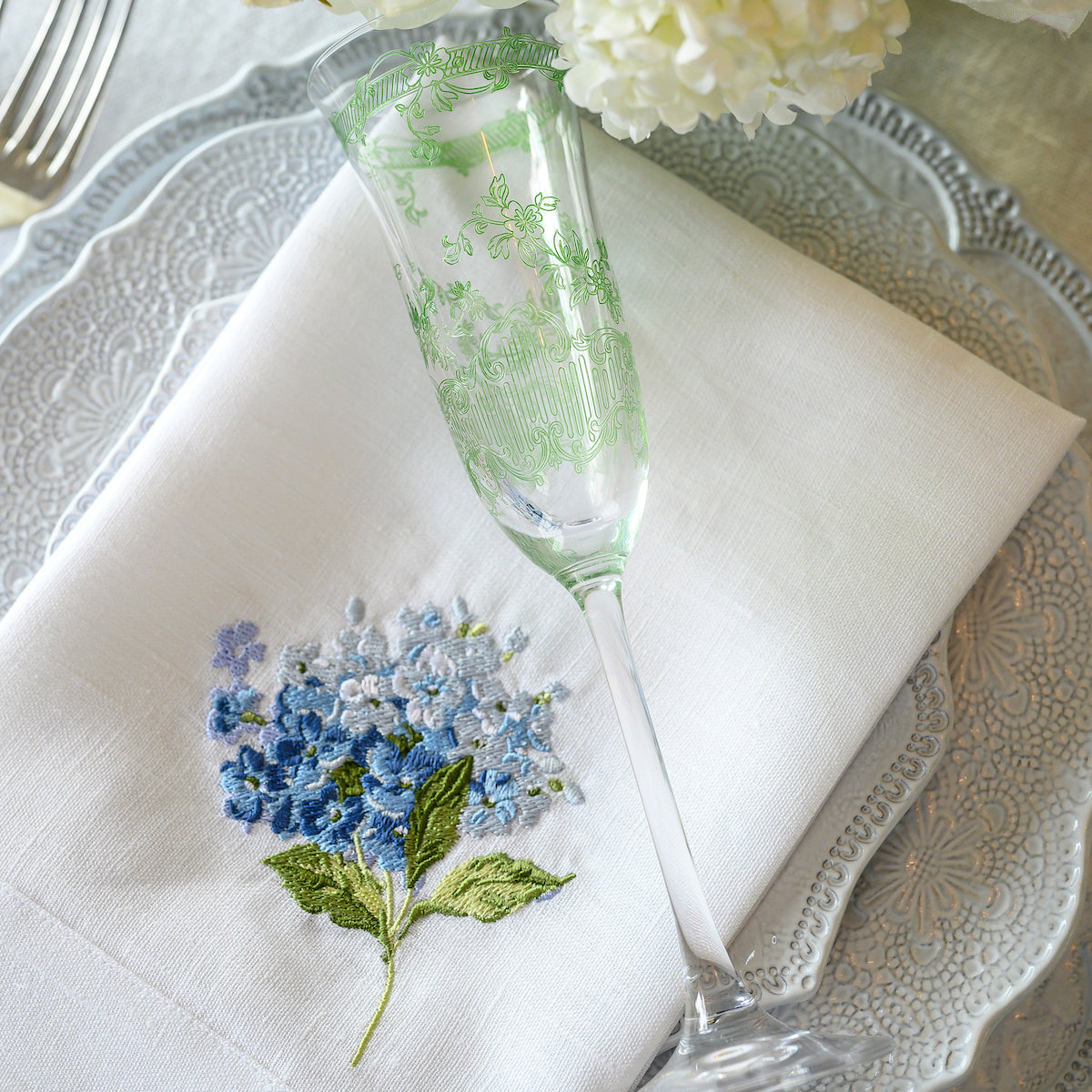 Our Giardino Glassware is both fun and refined. The exquisite, finely etched colors create a vibrant yet elegant look. They pair beautifully with so many of our collections and linens. Don't they just make you happy?