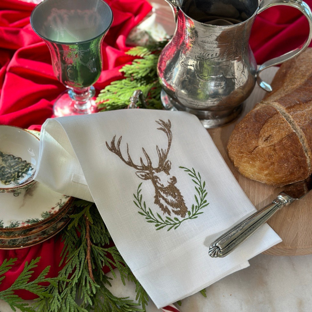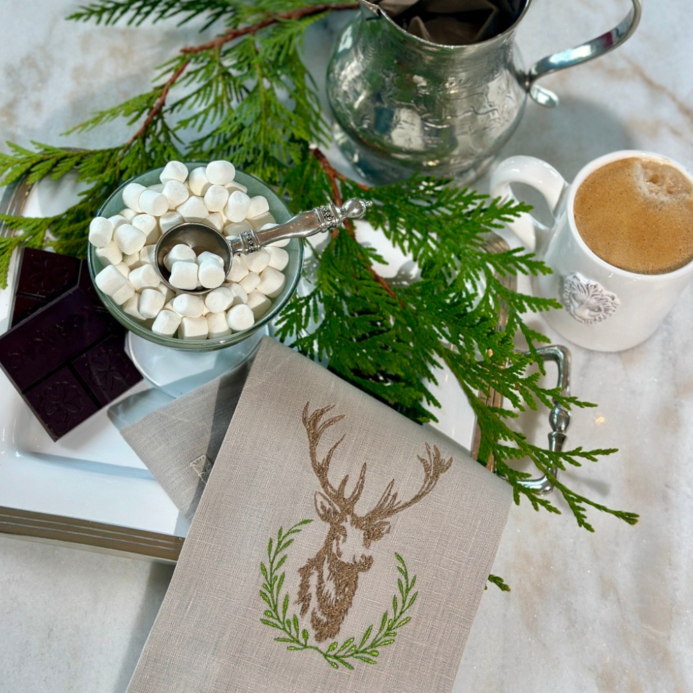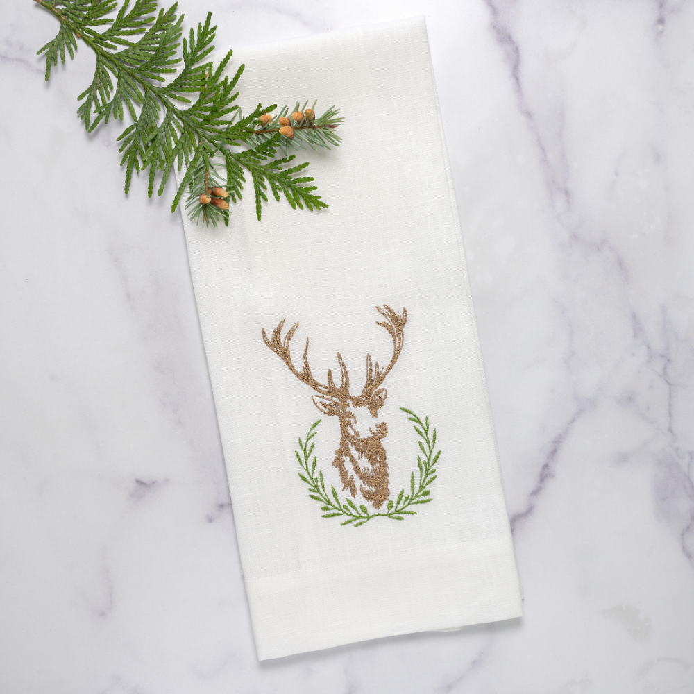 Dress up the kitchen or bath with this beautiful 100% European linen embroidered towel. So many ways to add beauty to any part of your home. Machine wash and iron flat for a crisp look. Tab on back for hanging.