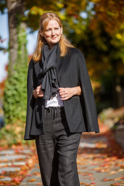 Finally, you found it! The perfect cape! Crafted from a luxurious cashmere blend, this elegant layering piece effortlessly bridges seasonal wardrobes. Its versatile design pairs beautifully with everything from formal dresses to casual jeans. Featuring both inner and outer pockets alongside discreet hook and eye closures, it promises both style and practicality. A timeless addition destined to enhance your collection.