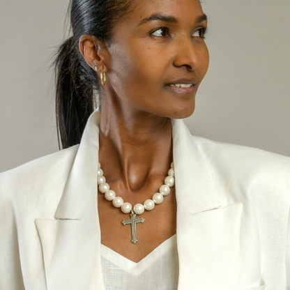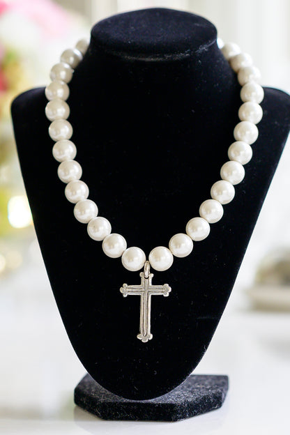 Pearl and Pewter Cross Necklace - Website Exclusive