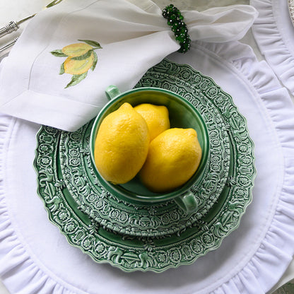 Characterized by exquisite, ornate patterns with intricate details, our Renaissance  Collection reflects the magnificence of that period. Incorporating elements found in paintings, sculptures and friezes of the era, this extraordinary collection captures the look and feel of the Renaissance. Available in classic White and deep Italian Green these pieces exude elegance, refinement and classical beauty. Pairs beautifully with so many other collections particularly our new Imperial line. Great art lives forever. Handmade in the Veneto Region of Italy.