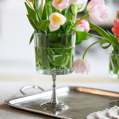 You can never have too many flowers, therefore, you can never have too many vases. Adorn your home with our striking Tavola Medium Vaso with Pedestal, crafted with Italian pewter and glass. Perfect for displaying fresh flowers, this Italian vase has an adds a touch of sophistication to any living space. Make a statement with something truly special! Pairs wonderfully with Tavola Small Vaso with Pedestal. Italian pewter, made in the Lombardy region of Italy.
