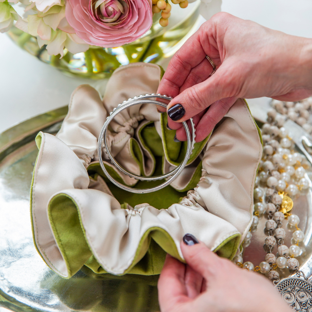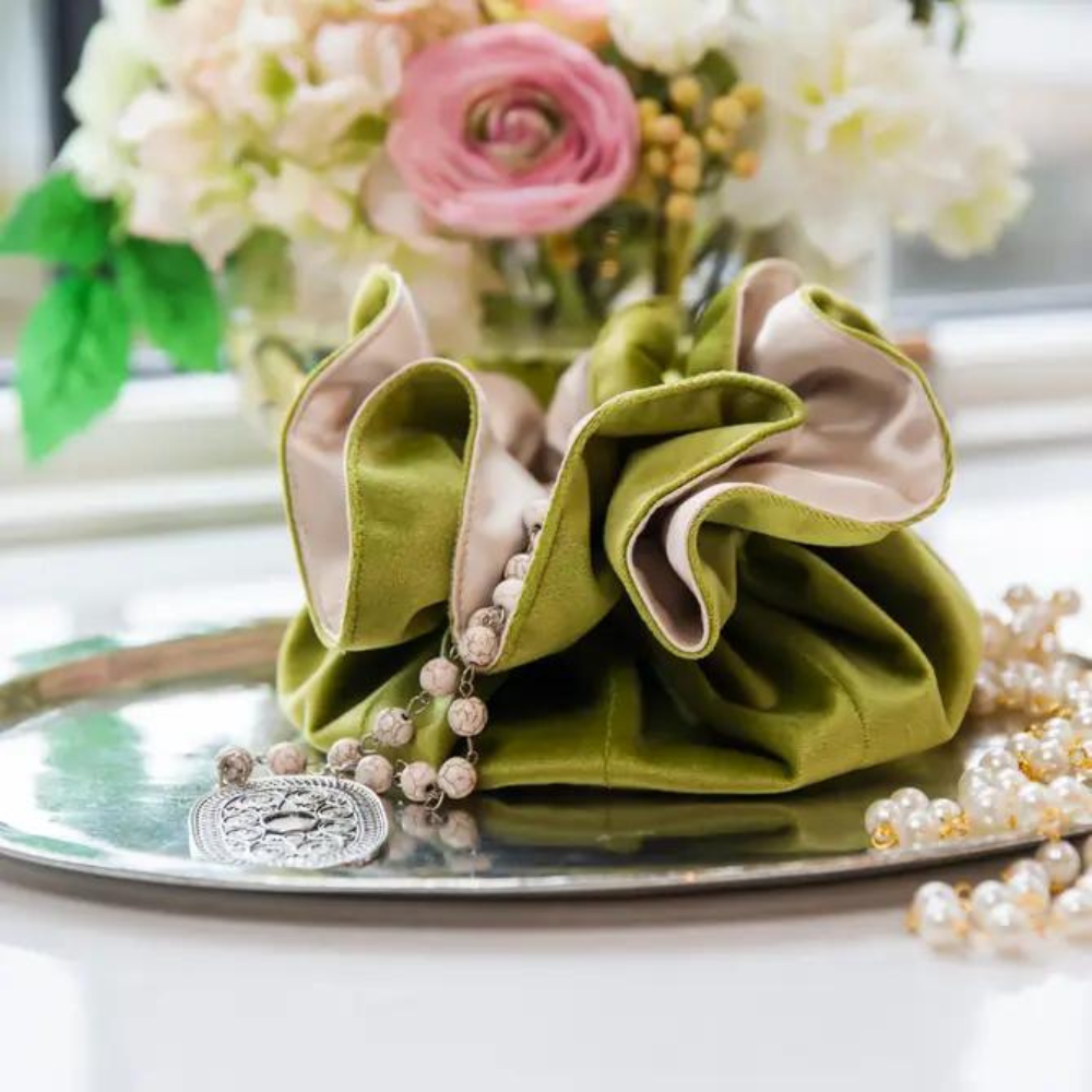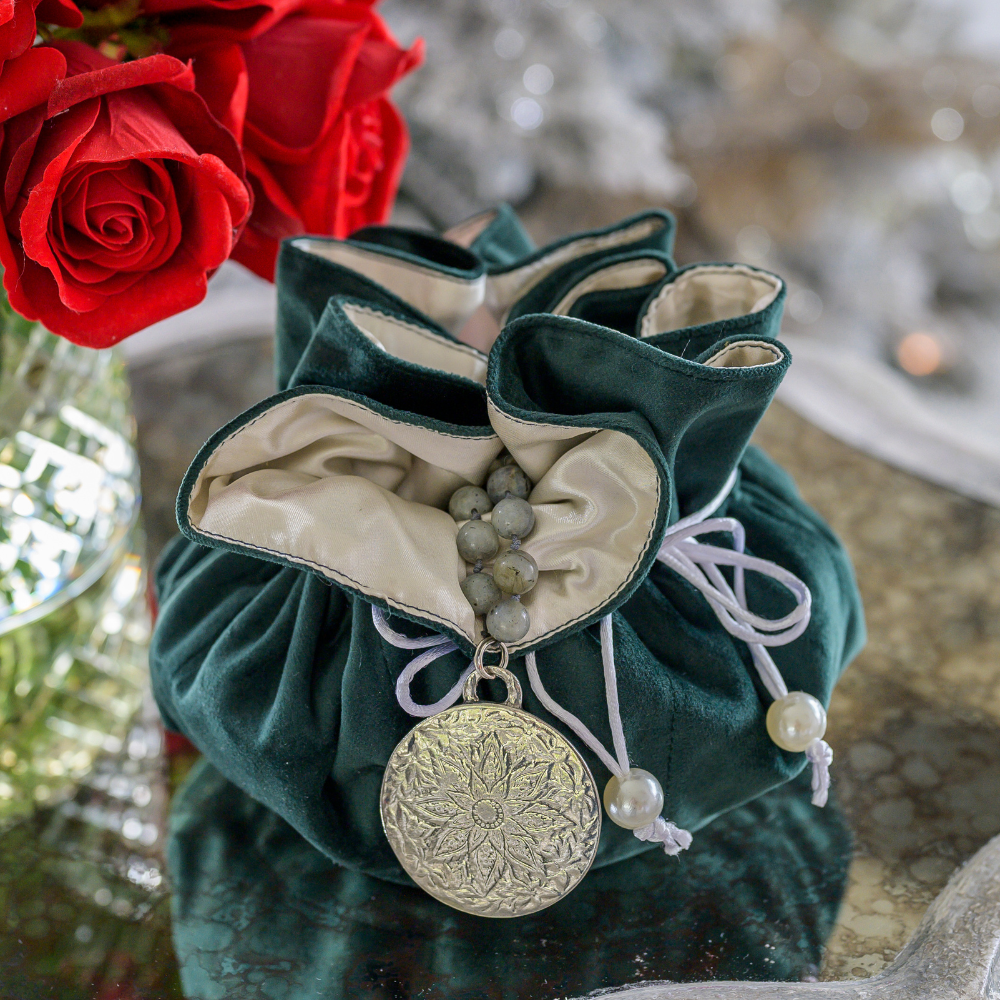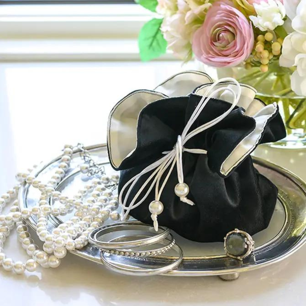 Keep your treasures organized in one place with our Velvet Jewelry Blossom Pouch. Perfect for storing and protecting your fine jewelry, this pouch features a central pocket surrounded by smaller pockets and a draw string for easy closure. Lined with soft viscose, it makes the perfect gift for yourself or a loved one!  It is also ideal for traveling. Beauty and function all in one.
