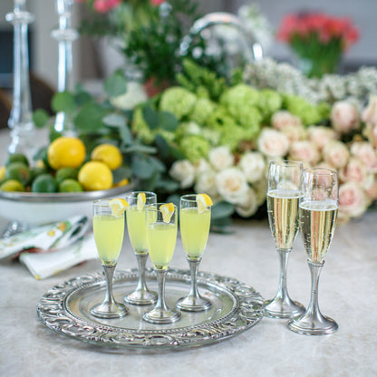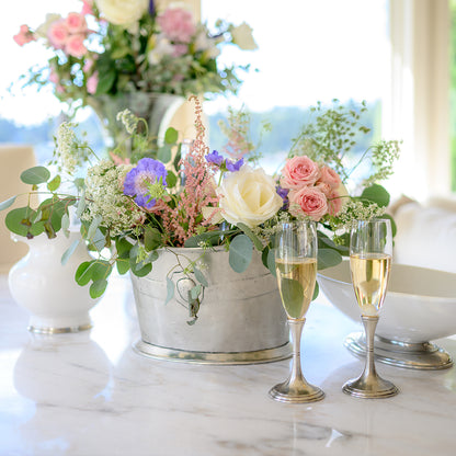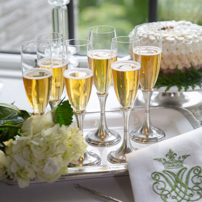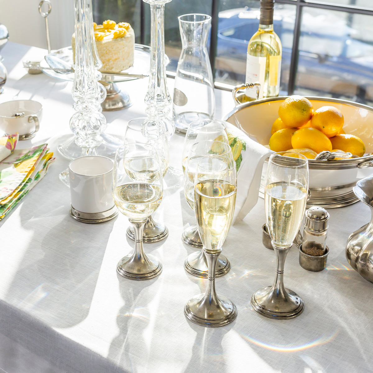 Shakespeare may not have been referring to our Verona Collection but so many of our customers share his sentiment. Graceful forms of glittering glass stand atop handcrafted pewter stems. True vintage heirloom pieces that will carry memories across generations. Italian pewter and glass; hand made near Verona in the Lombardy Region of Italy.