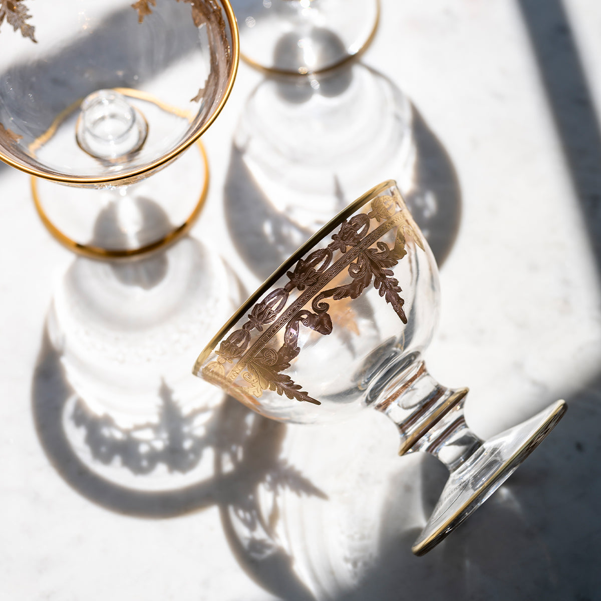 Our Vetro Gold Collection has been known to leave guests speechless. Florentine master artisans hand paint 24-karat gold highlights on intricate hand etched designs. The results are nothing short of extraordinary. One of our most popular collections. Hand made in Tuscany.