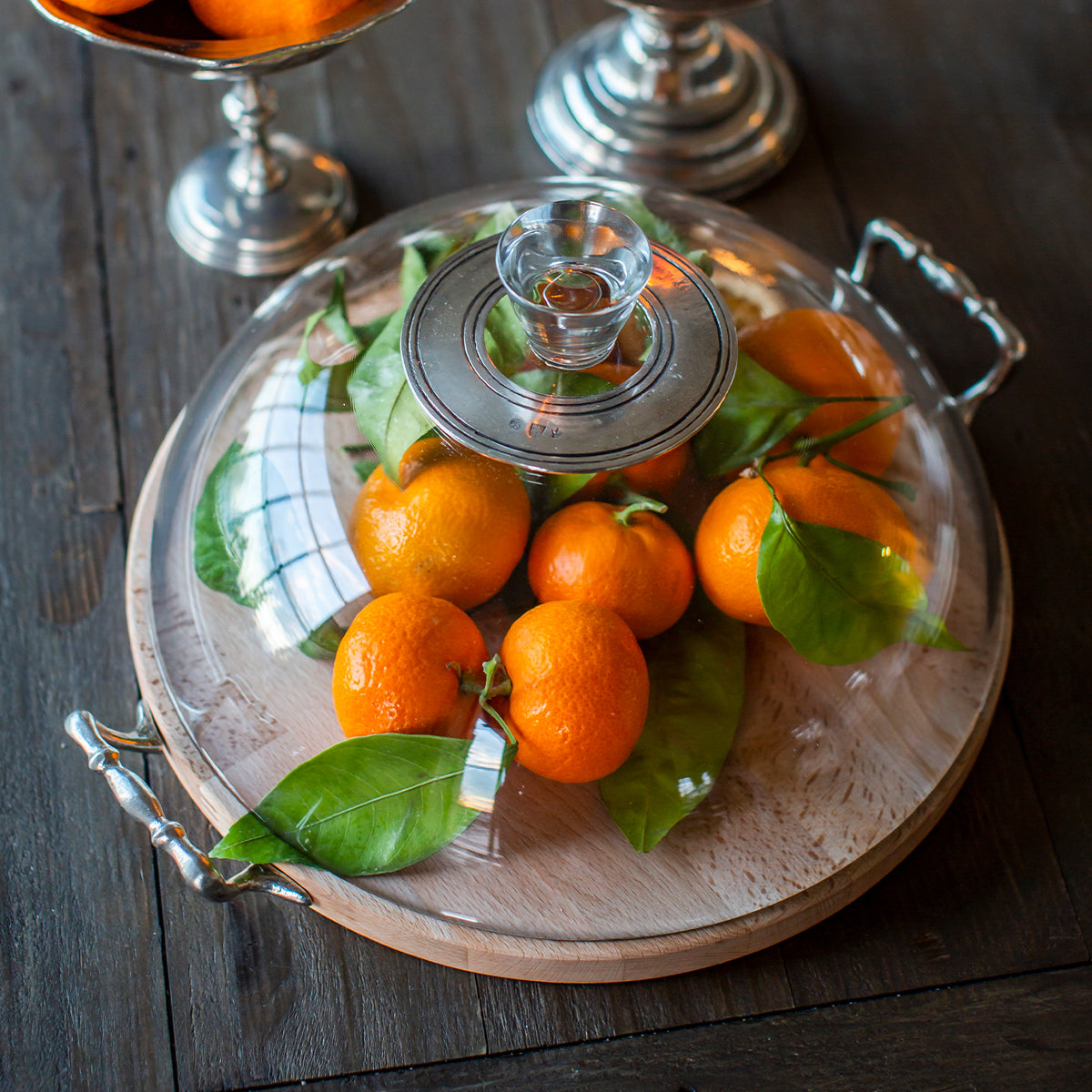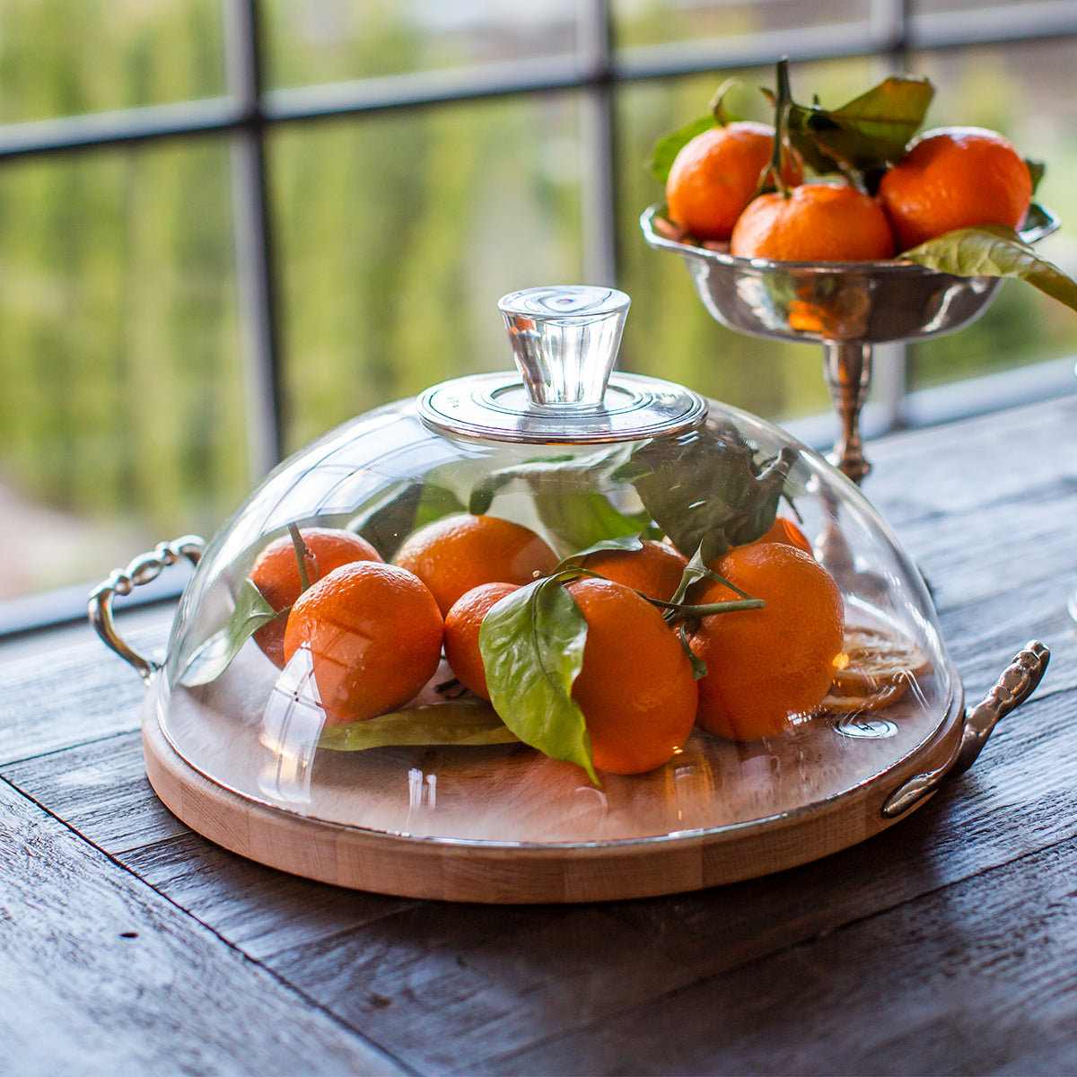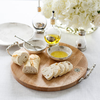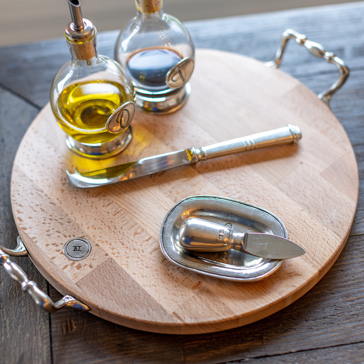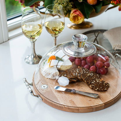 A few friends are stopping by and you want to offer them a little something. Our Tavola Wood Cheese Board is just the piece you need! The generous, beautiful wood surface with beveled pewter handles and stamp is both stylish and casual. Pairs perfectly with the Tavola Dome for those al fresco get togethers. Another wonderful everyday piece!
