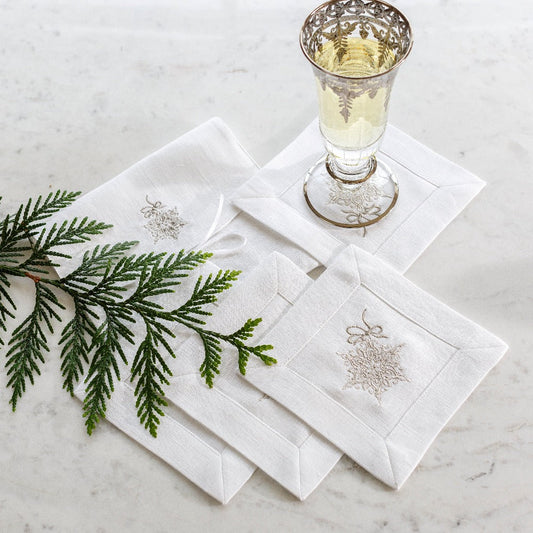 Ensemble de serviettes cocktail blanc flocon de neige (4)