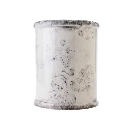 Elegant handmade Italian ceramic crafted with exceptional artistry, featuring a delicate floral design available in soft gray