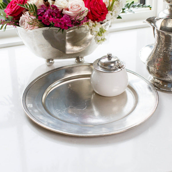 Notre chargeur Peltro est parfait avec un grand nombre de nos collections. Utilisez-le comme chargeur ou comme pièce de service. Il a un design classique qui sera apprécié pendant des années. Étain italien, fabriqué à la main en Italie. Lavage à la main seulement.